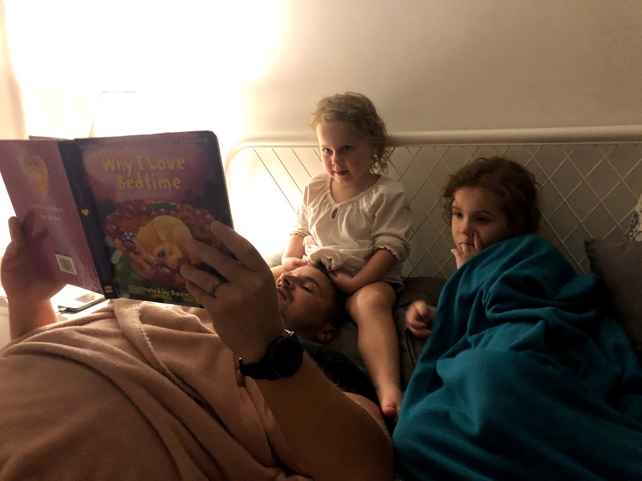 Then it was time for bedtime stories: Jonathan reads with Littles and I read with MsC.