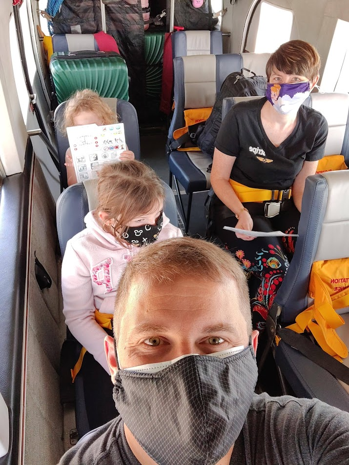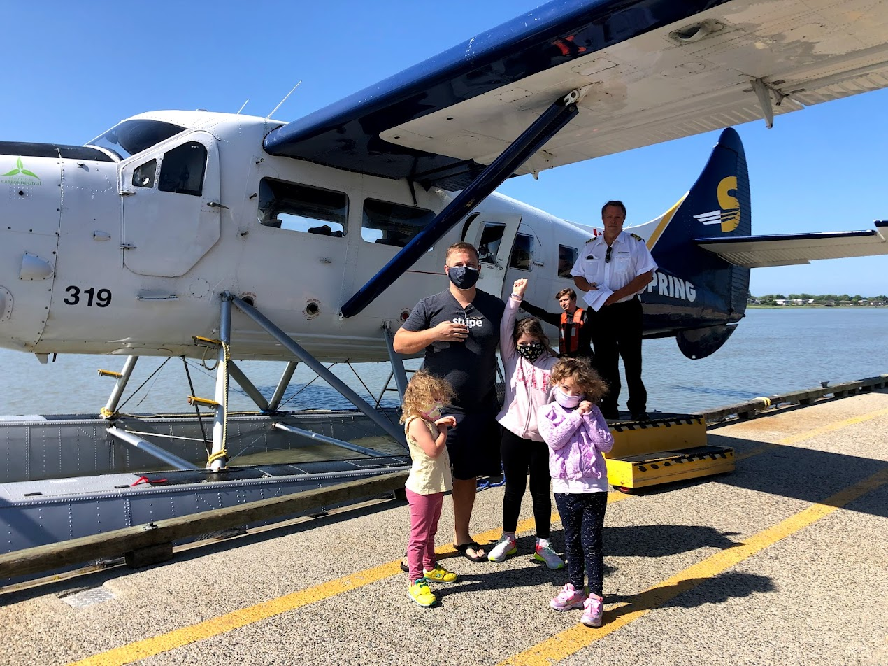We got to watch a few sea planes take off before it was our turn. The kids were pretty impressed with this runway. We took a photo with our pilot and climbed aboard. The pilot said he was bring a Dock Hand to help with the luggage in Maple Bay.