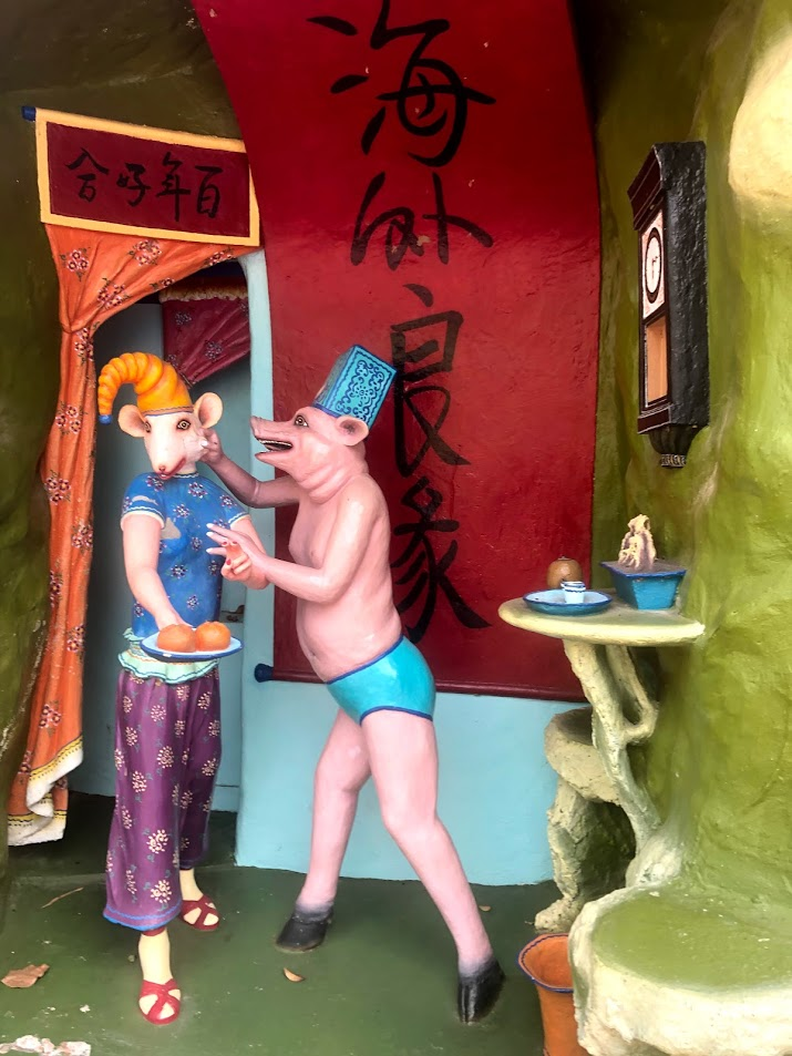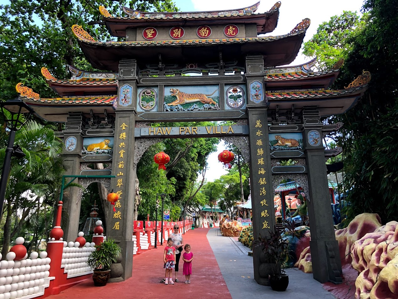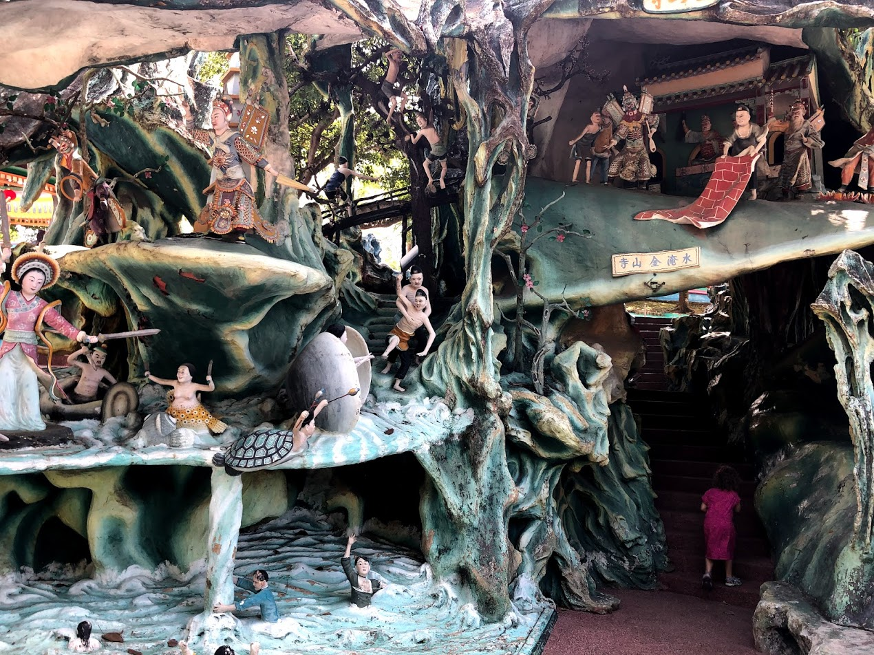 I'd been hearing about this free outside garden that shows the morality tales of Buddhism in statue vignettes, sometimes in grotesque detail. We skipped the "10 Courts of Hell", which I've been told can seem rather scary to children. The gardens have a bit of greenery, but mostly it's statues and the vignettes. This place is such an odd and awesome Singaporean thing.