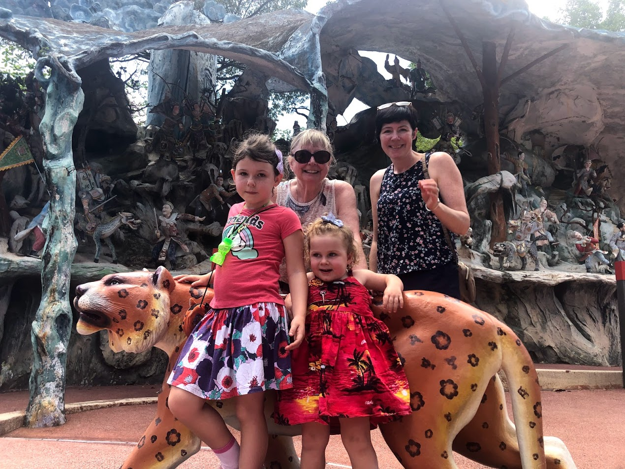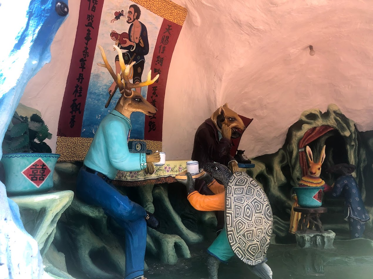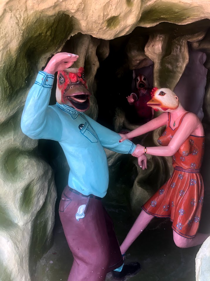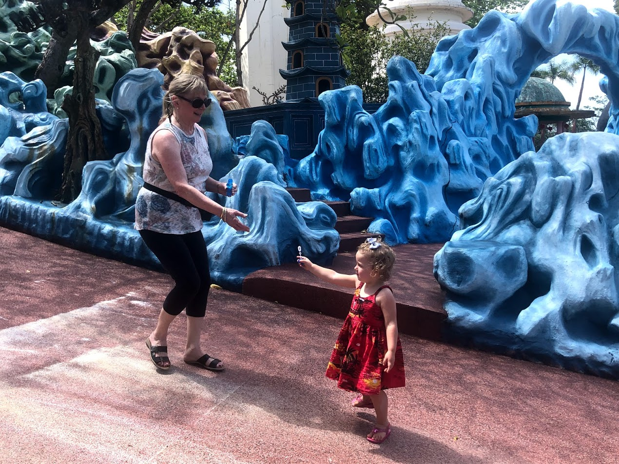 I'd been hearing about this free outside garden that shows the morality tales of Buddhism in statue vignettes, sometimes in grotesque detail. We skipped the "10 Courts of Hell", which I've been told can seem rather scary to children. The gardens have a bit of greenery, but mostly it's statues and the vignettes. This place is such an odd and awesome Singaporean thing.