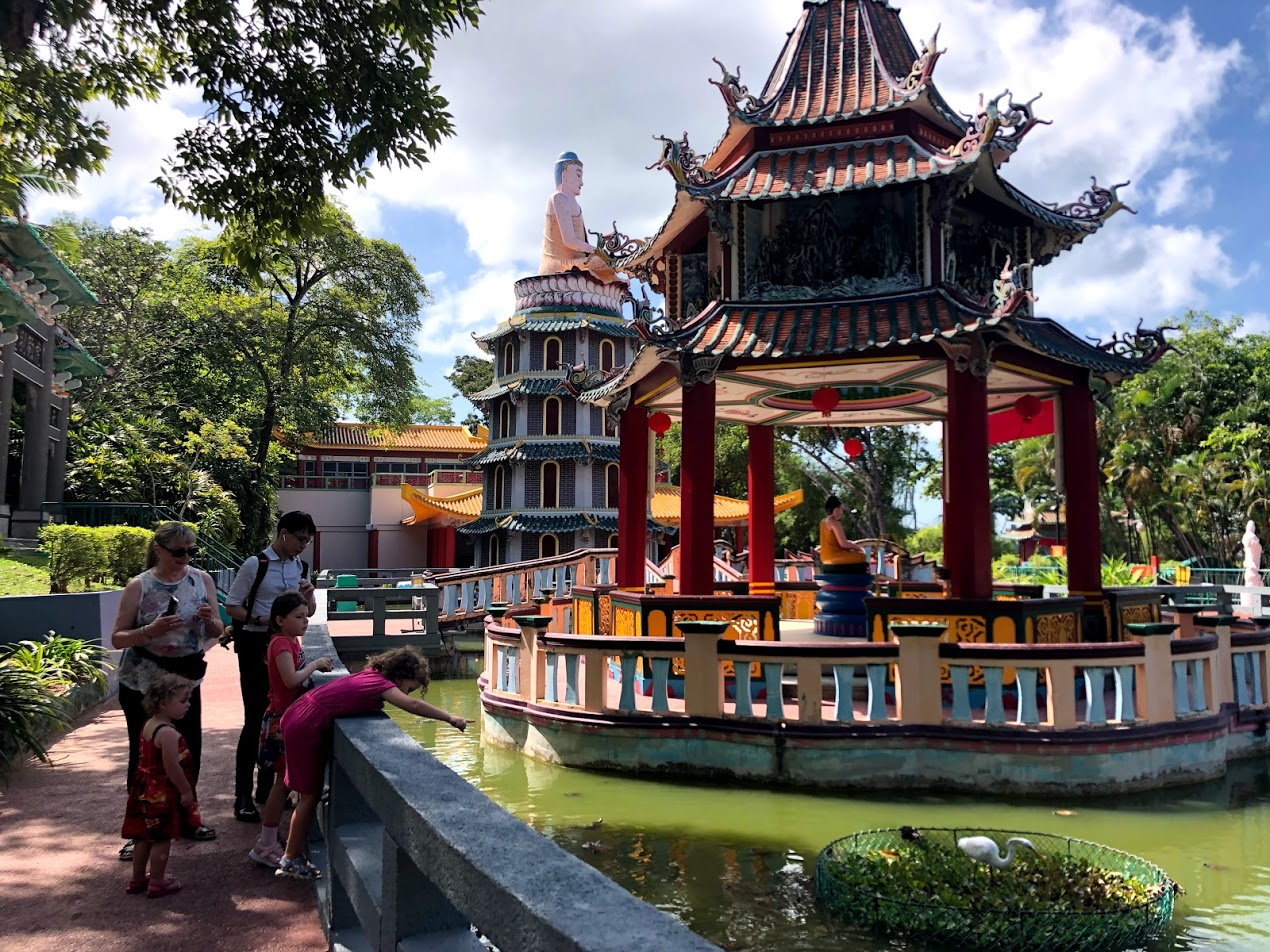 In the centre of the Gardens is a large pond and the site's largest Buddah statue. Feeding the turtles and fish to "increase our karma" at the pond was the kids favorite part. Food was provided for $1 a bag with the honour system.