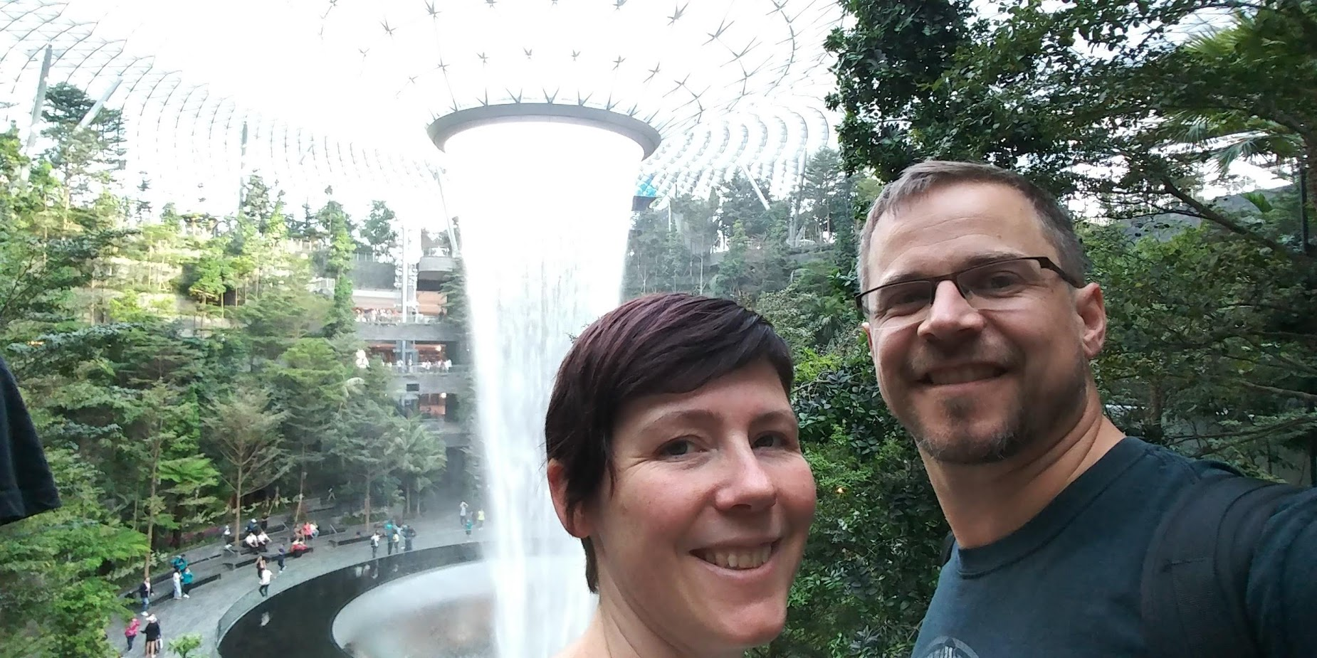 A quick peek at the marvel that"Rain Vortex" at Jewel Mall - the mall connected at Changi Airport. It's a 40 meter indoor recirculating waterfall in a serine tropical garden. This was one of the most peaceful places I've ever been, and it's man-made. Check it out if you are near the airport.