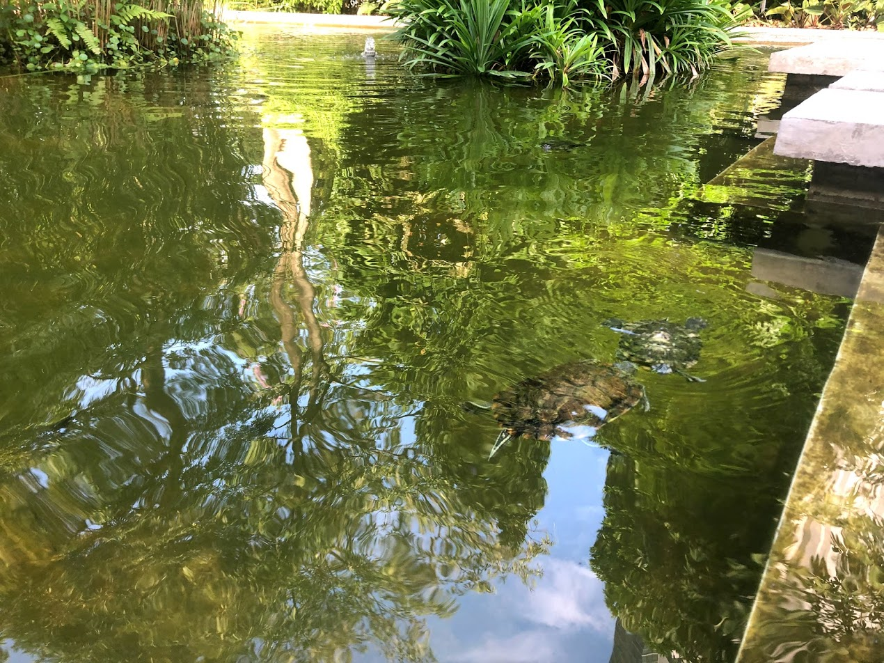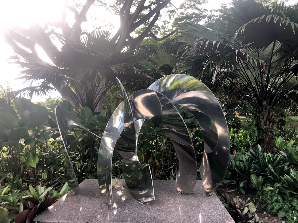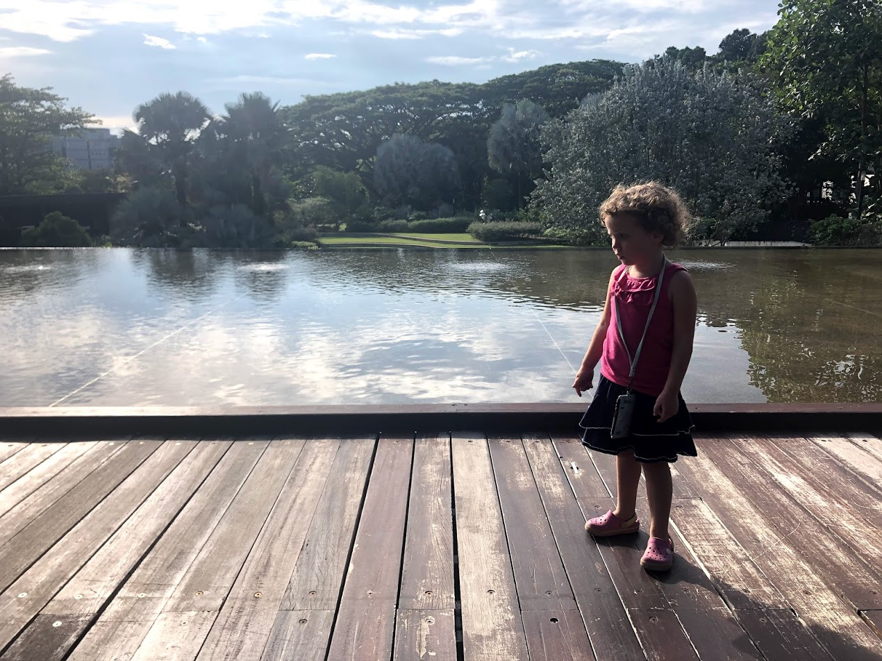 We started by counting turtles in the Koi Pond near the car park. Ms.E was next thrilled by the infinity pond overlooking the park. I thought it was pretty special too especially, in the late afternoon light. There were interesting metal sculptures spread throughout the first part of the park.