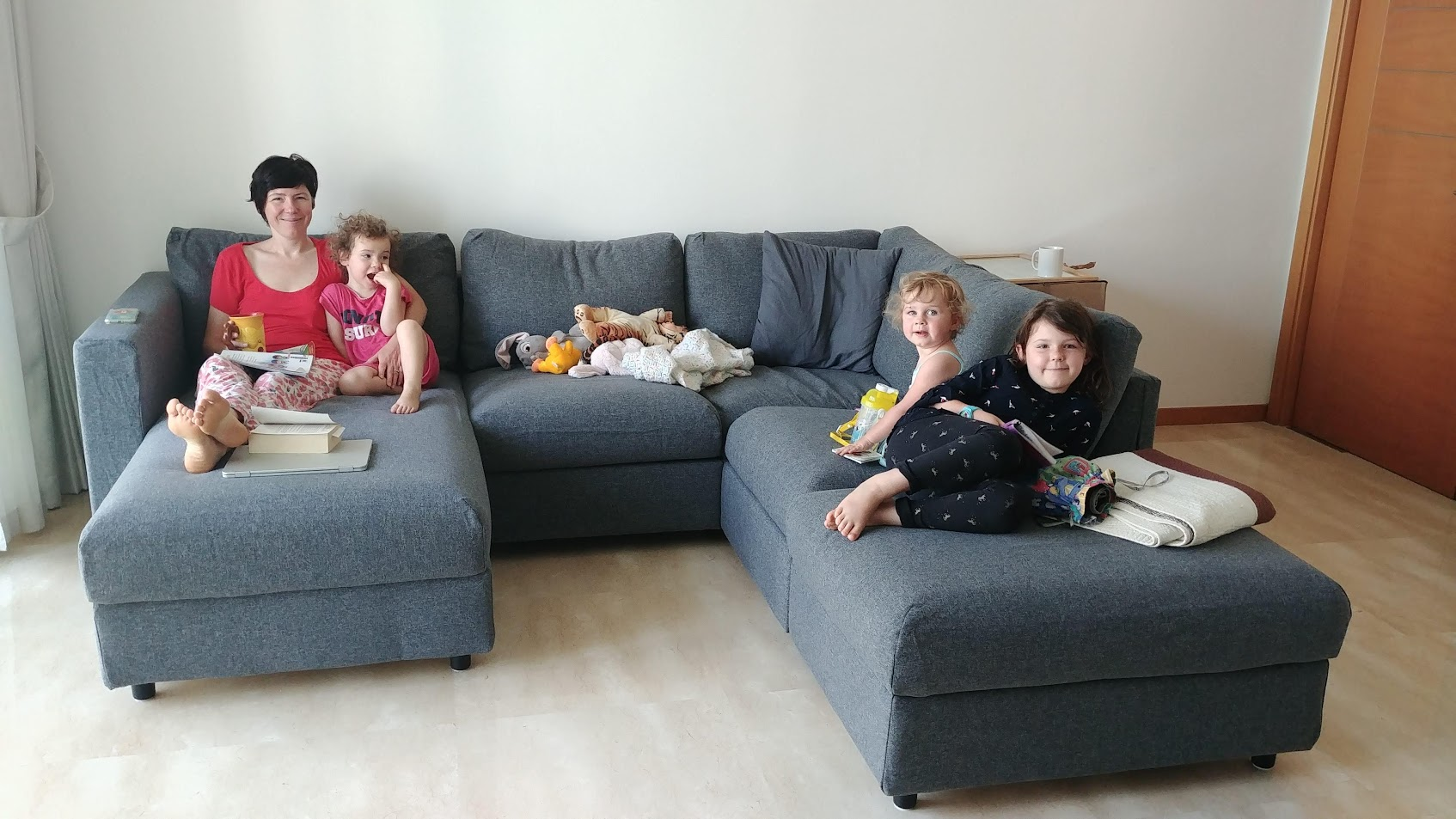 There is a bit of a language gap. Basically one guy speaks English and the other does not. Today it probably took 15 minutes to explain the layout for the couch. It was one of those ones where you pick the pieces and then build it online to decide how you want it to look. It came in 5 pieces and we’ve got it set up as a U.