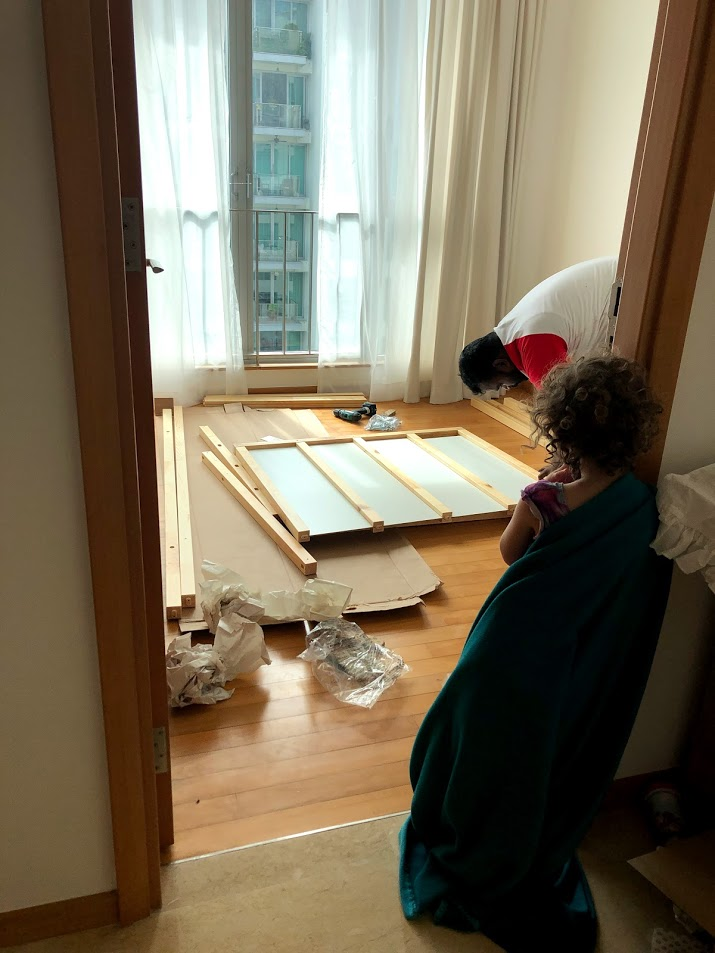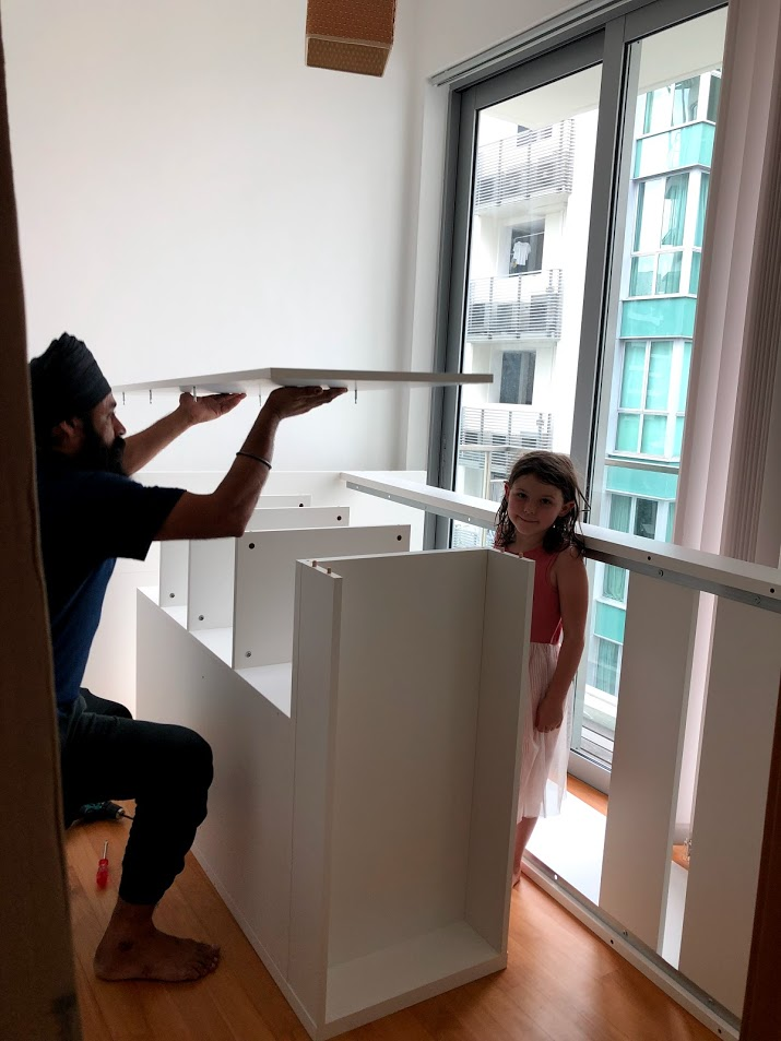 Ikea brought our couch and table about a week ago. We paid to have the couch assembled. It’s our second time doing this. Our first time - we paid something like $90 to have 4 beds assembled, and that poor guy were here until 6 pm. I think it took 4 hours. Ms.C’s bed took most of that time. It’s a loft bed with a desk, bookshelves, 4 drawers, and a wardrobe all in one - which is the only way she was going to have any of that in the tiny den that is her room. The couch took 90 min.
