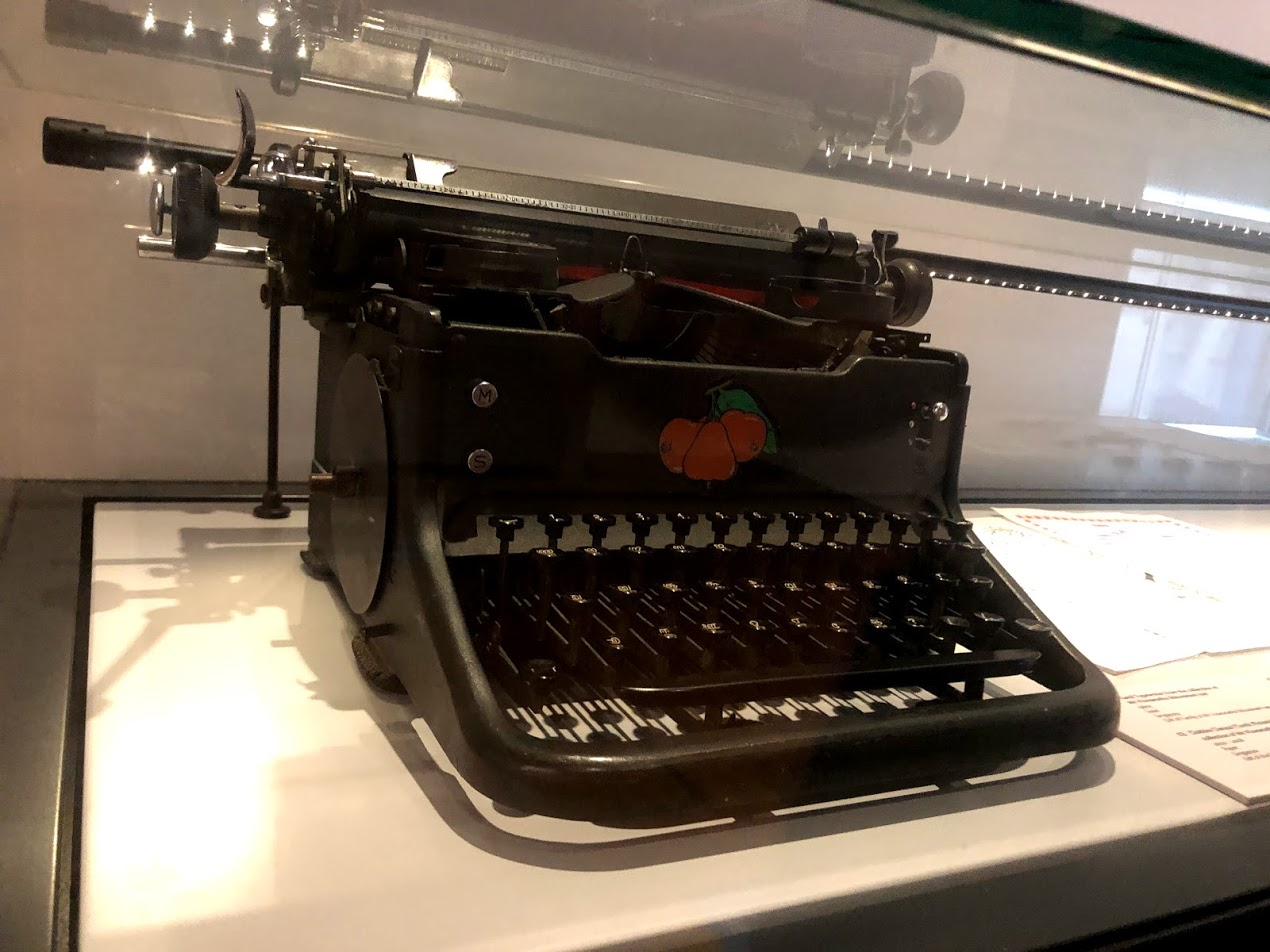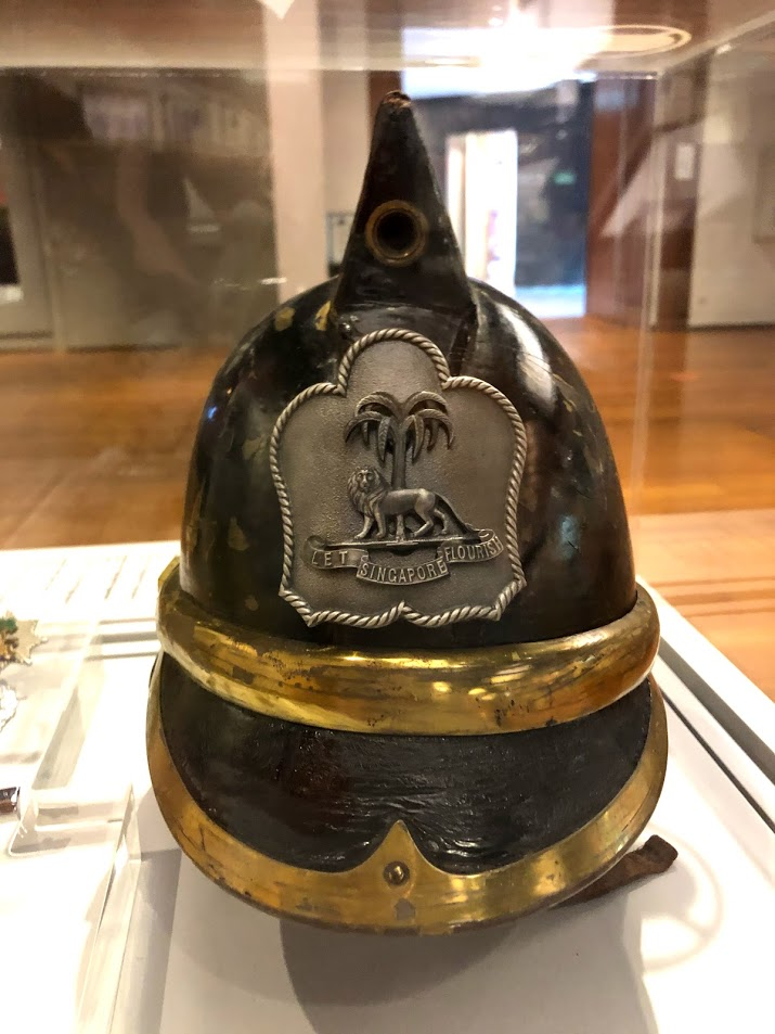 We found at a typewriter with both English and Hindi letters on each key. I explained how typewriters worked to MsC. We noticed the Singapore Lion on the police helmet on display; many men in the India community worked as Police.