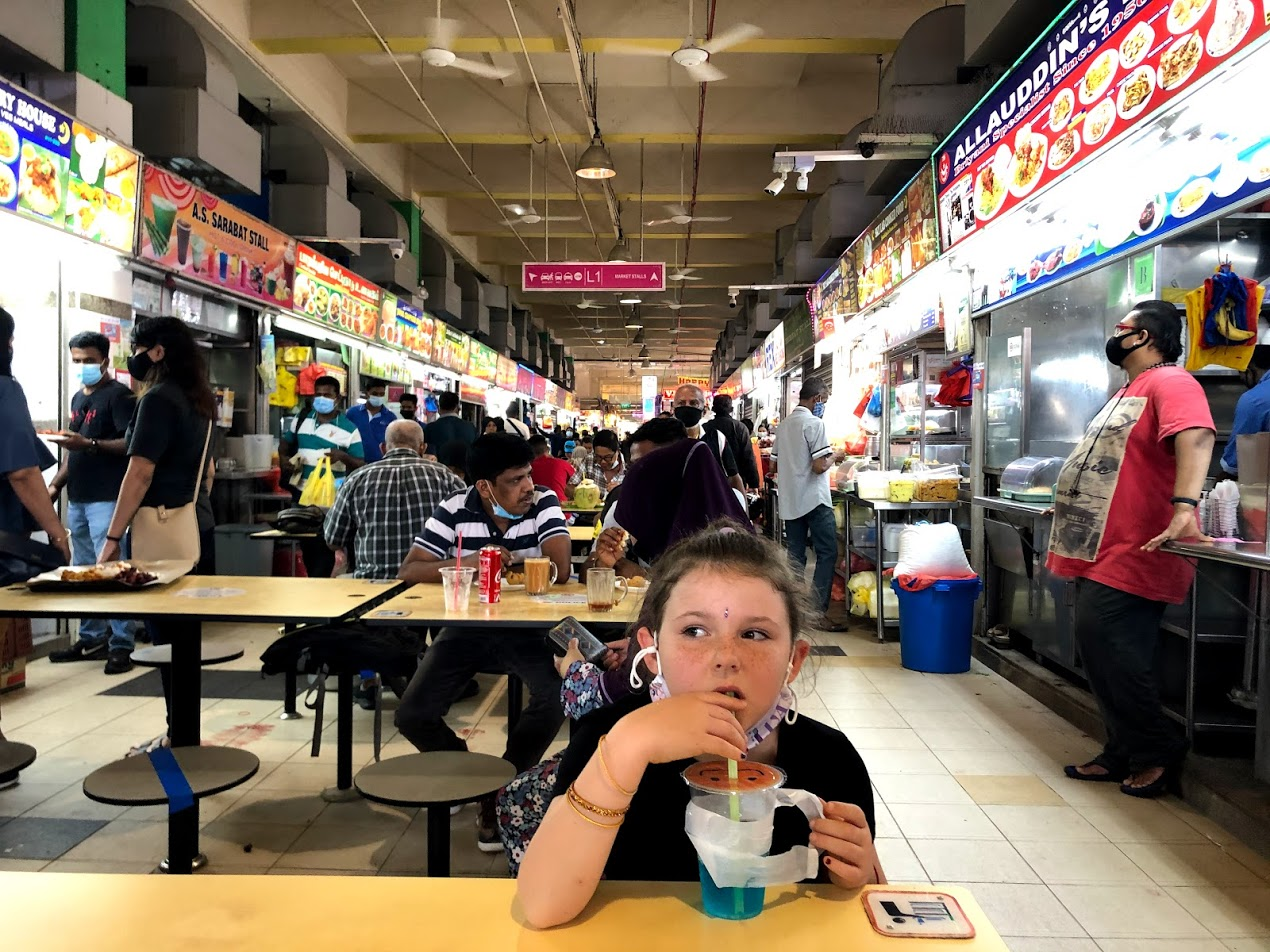 We also did get MsC her blueberry drink in the end by stopping in the Tekka Hawker Centre on our walk to the MRT. I ate Thosai (similar to a large thinner crepe made from a fermented lentil-rice batter). It's eaten by dipping it with your hands in different curries. MsC even ate it with me, this time.