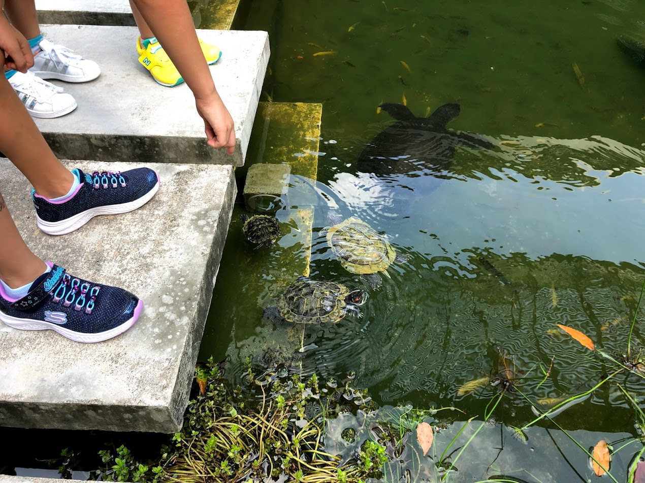We took a neighbourhood family of girls with us to meet the turtles at Hort Park.