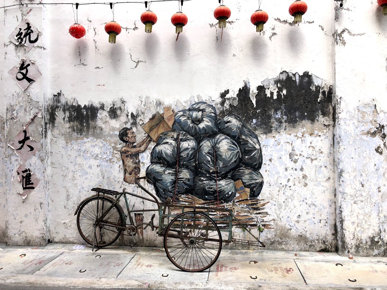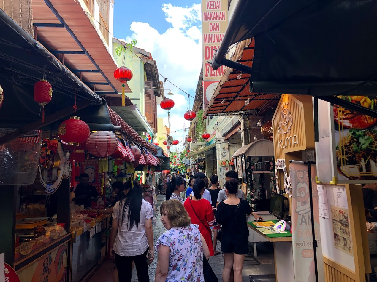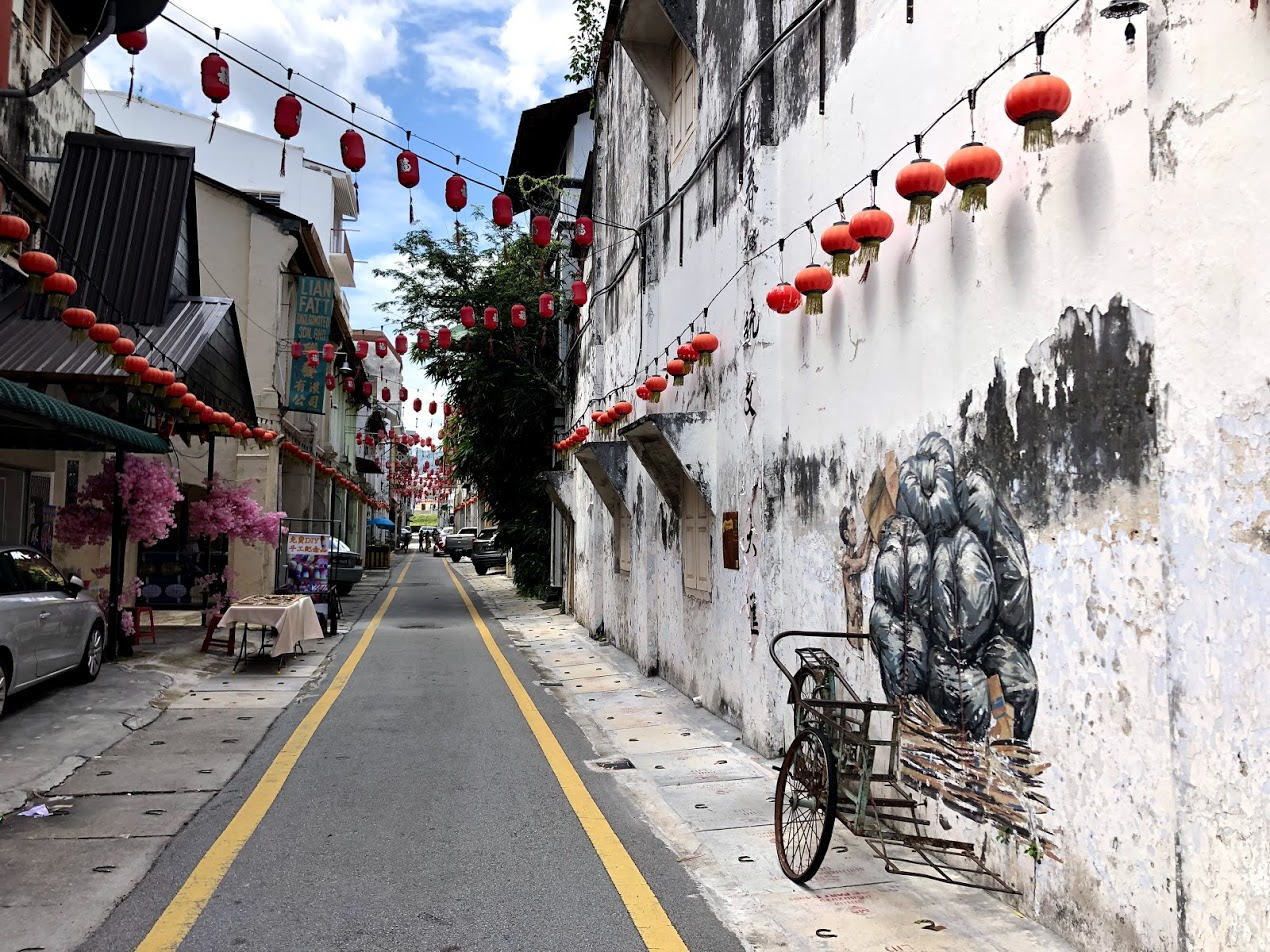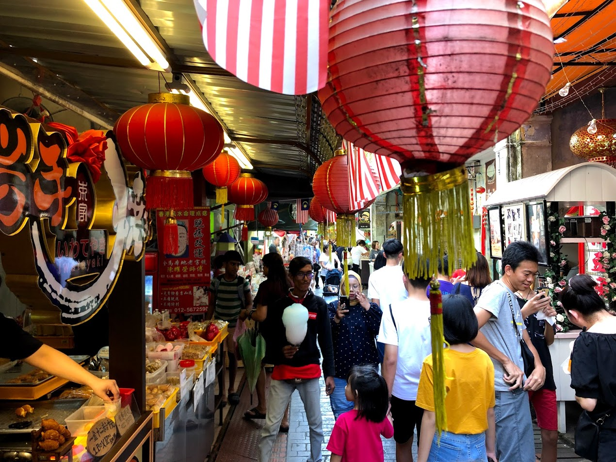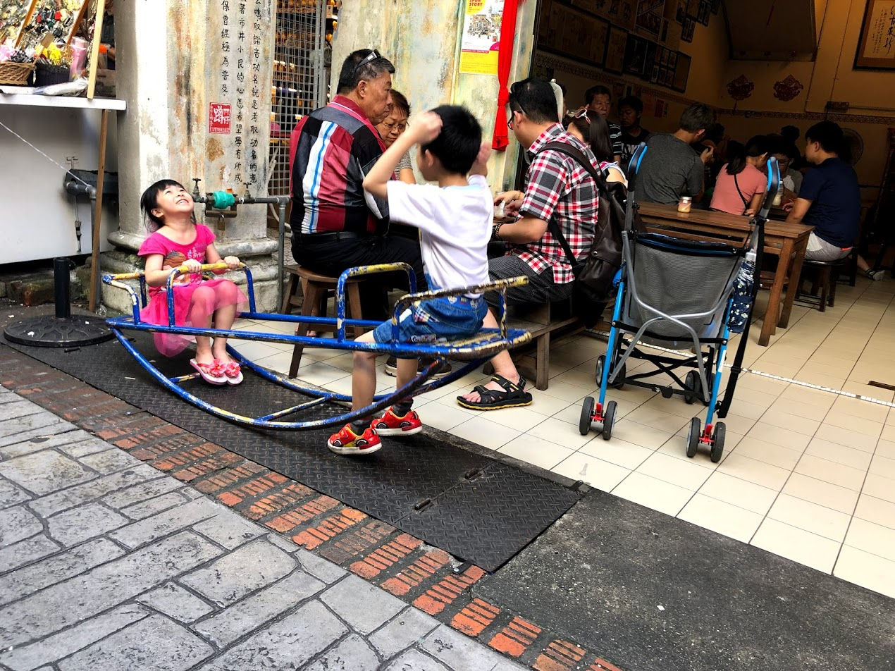 Today the narrow old lane is lined with red lanterns, with trinkets and souvenirs for sale. There are racks of cheap dresses. Local cooked food is plentiful, lots of street food stalls. The restaurants were rooms open right to the lane. I couldn't see menus so I was a bit intimidated to stop and eat. A metal see-saw was placed at the front of one with children playing as their parents ate. I was tempted by the bubble milk tea stall. We ended up eating a few blocks away at a Hawker Centre.