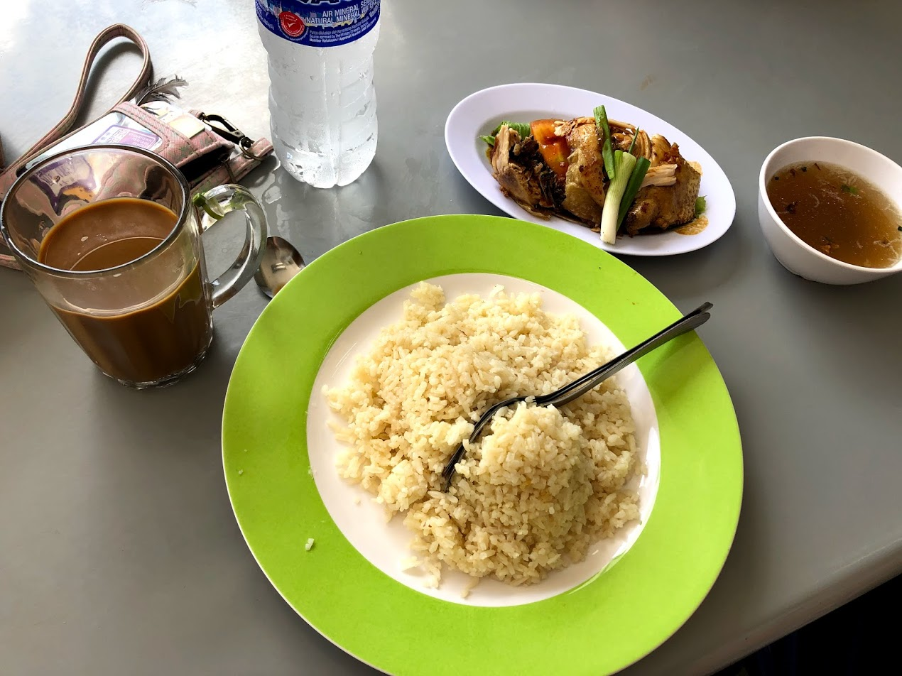 A clock tower drew us out of the alleys to take some photos. It turned out it was in a little square at the Hawker Centre. I got myself kopi and chicken rice. My lunch was $8 ringgits (about $3 CAD/SG).