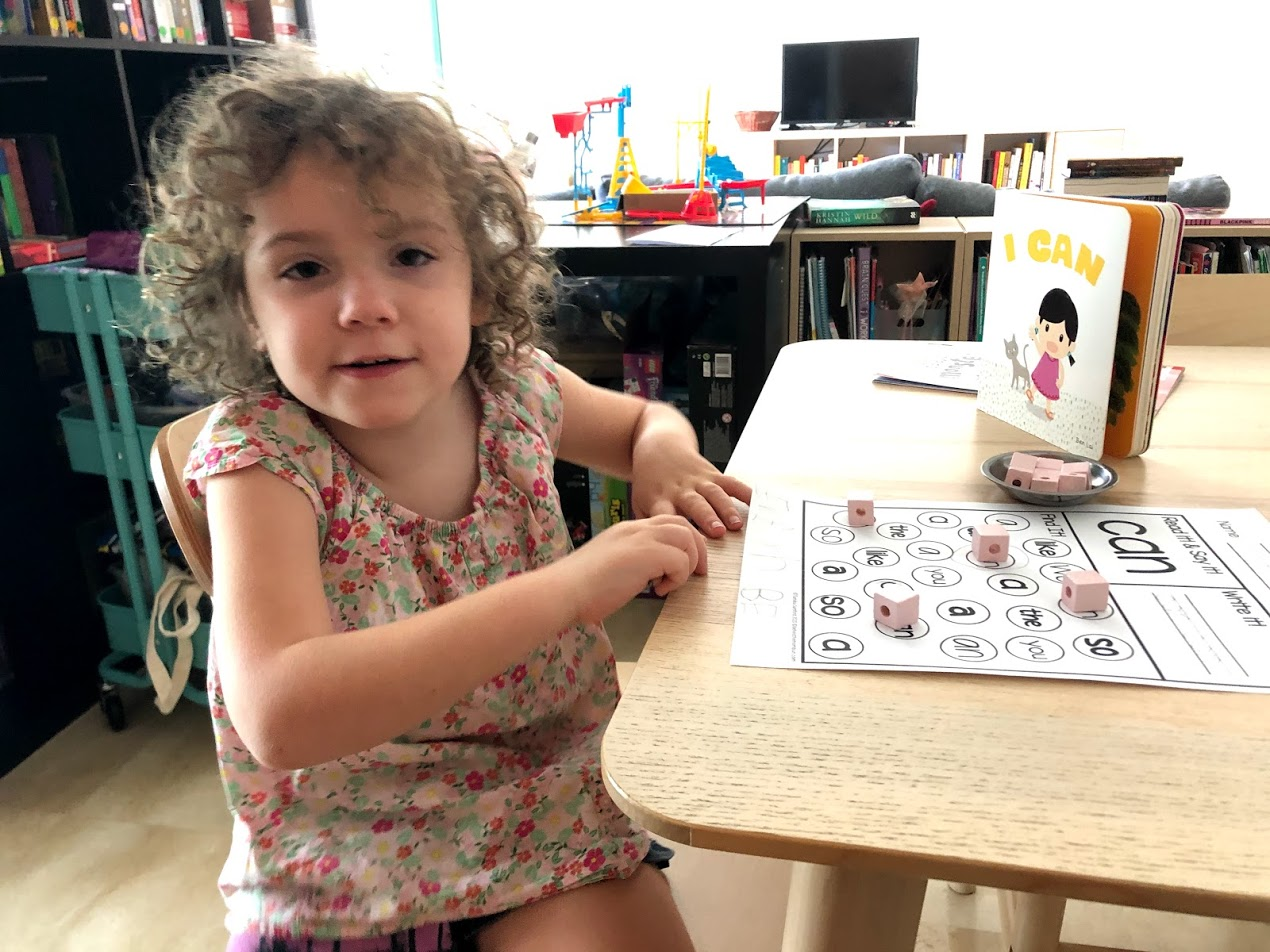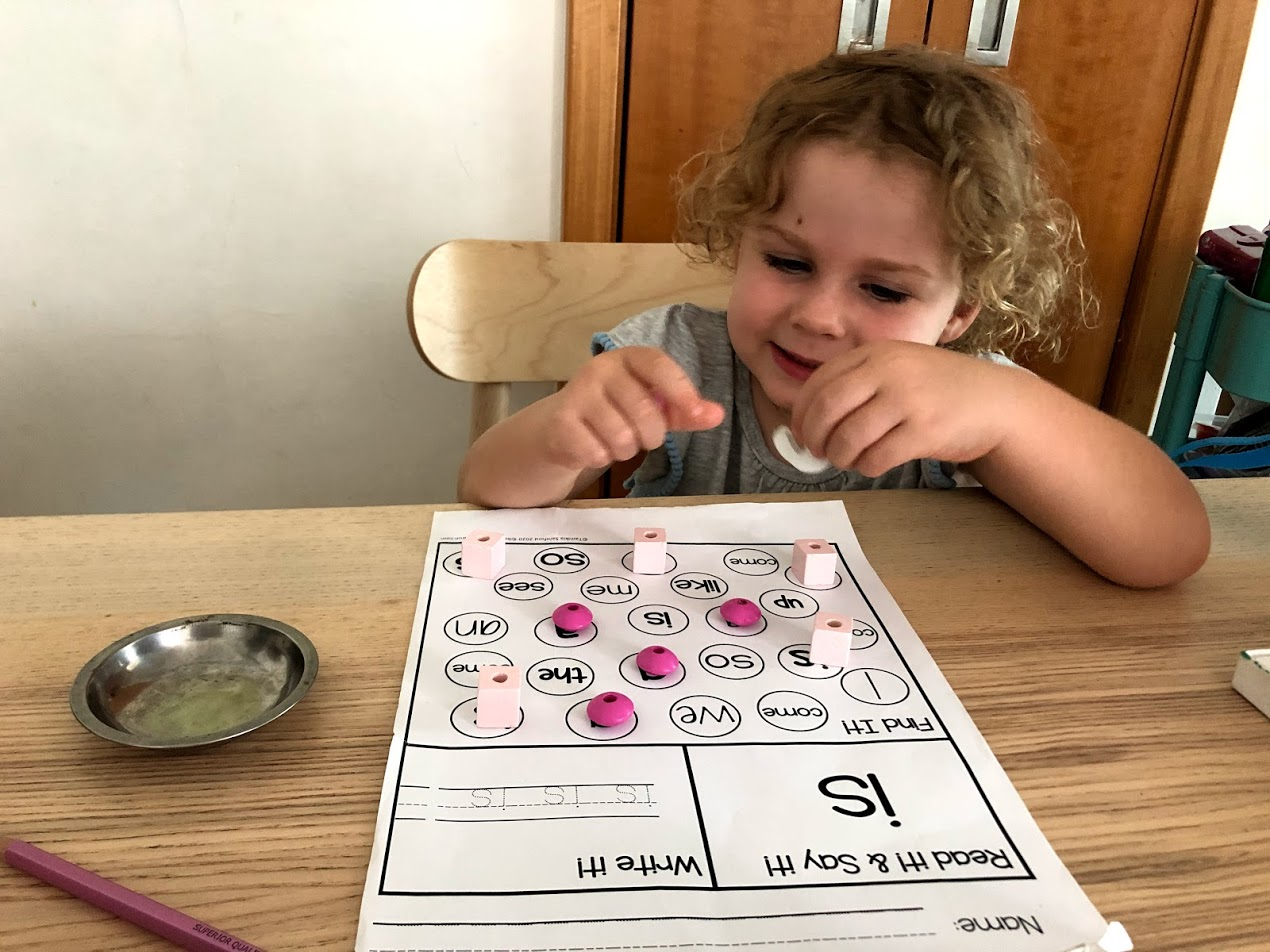 The Littles do word finds with the sight word of the day, putting blocks on the word when they find it. MsI just reads the word out as she finds it; but MsE now tends to read out all of the words on the page as she searches for the chosen ones.