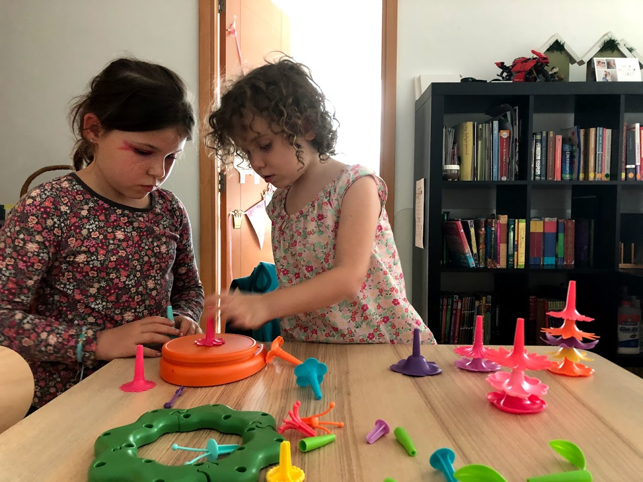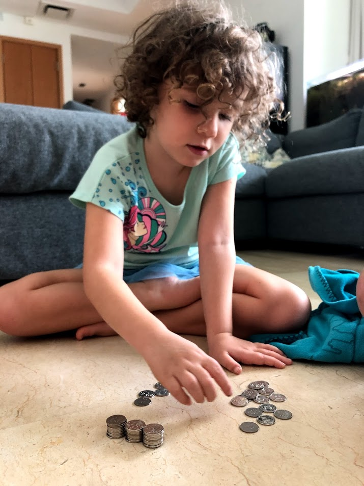 The girls have been paying Prodigy Math on the computer. MsC is still enjoying the story based instructions of Beast Academy and then using the separate workbook. MsE and MsI played with Singapore coins, making groups of 10 to help with counting.