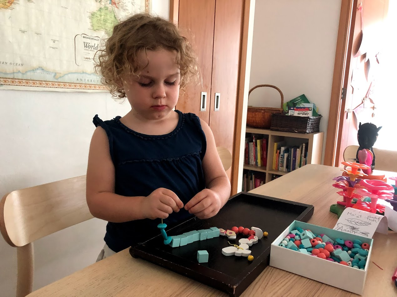 We've been using all the craft activities we got for Christmas: stringing beads, using sticker jems, trying out how to draw books, and lots of lego building.