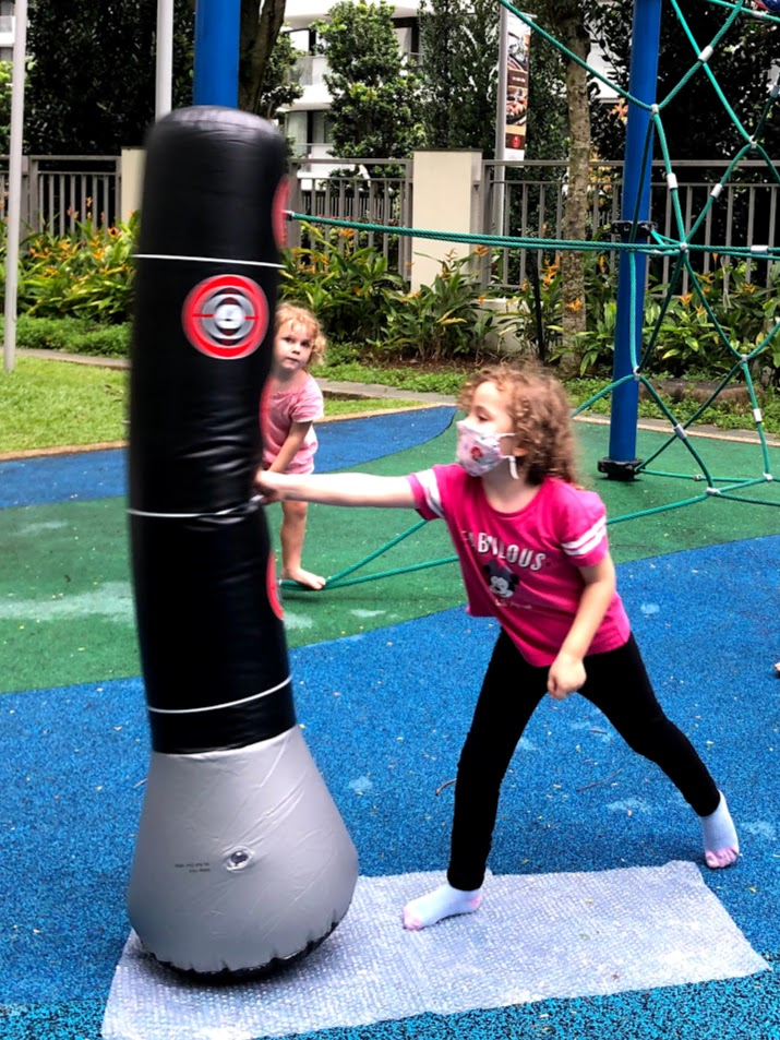 The rainy season seems to have eventually ended and dried out, so we started to spend more time at the pool as the month neared it's end. We're always learning something new at the playground, this month it was how to use a punching bag. One of the 9 year olds brought out her blow up punching bag, lined up every child on the playground, and they all took turns following her instructions. MsE, MsC and even little MsI lined up in this long and very patient line to join in this activity.
