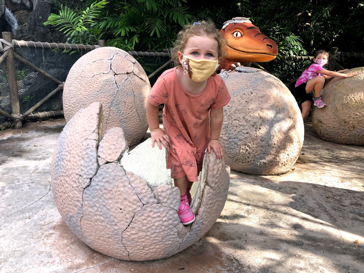 We discovered that MsE is finally tall enough to ride Jurassic Park, but she didn't feel ready so MsC and I rode alone. We forgot our ponchos at home, but braved the water ride anyhow and thankfully didn't get soaked this time.
