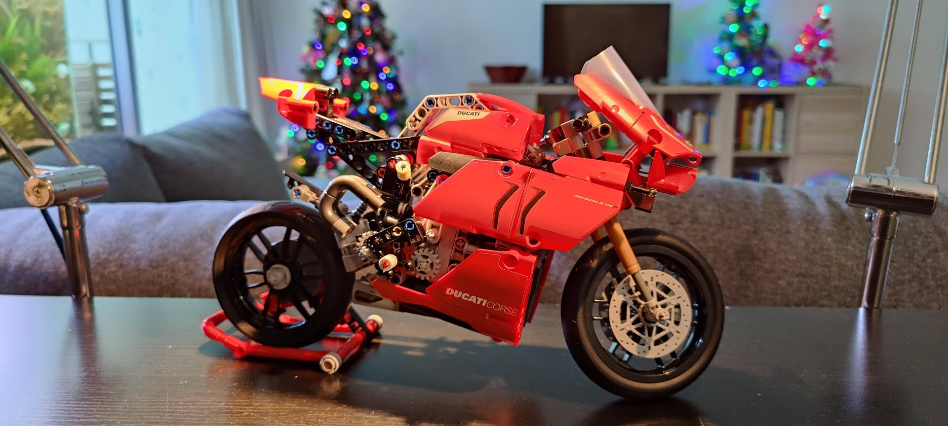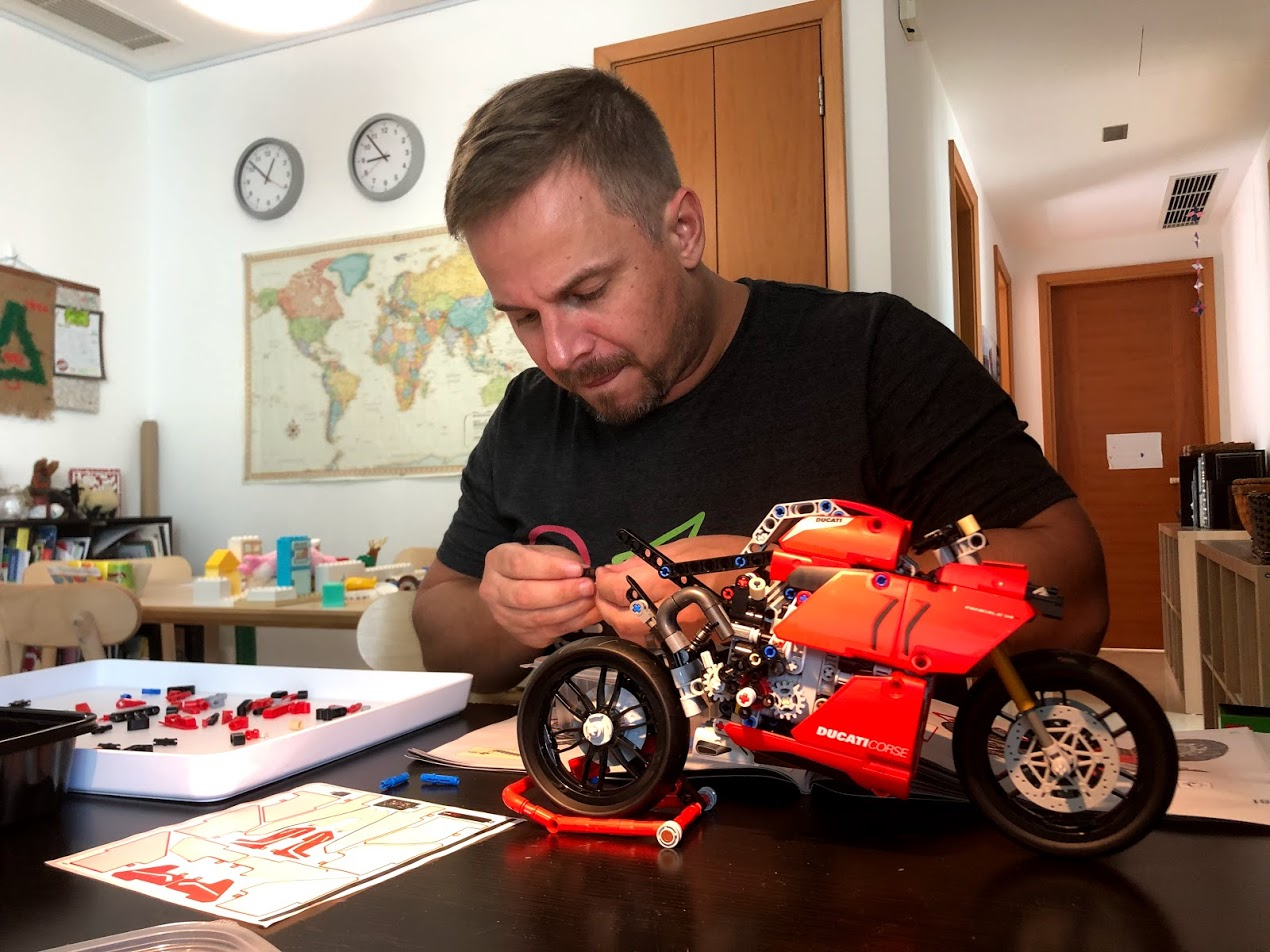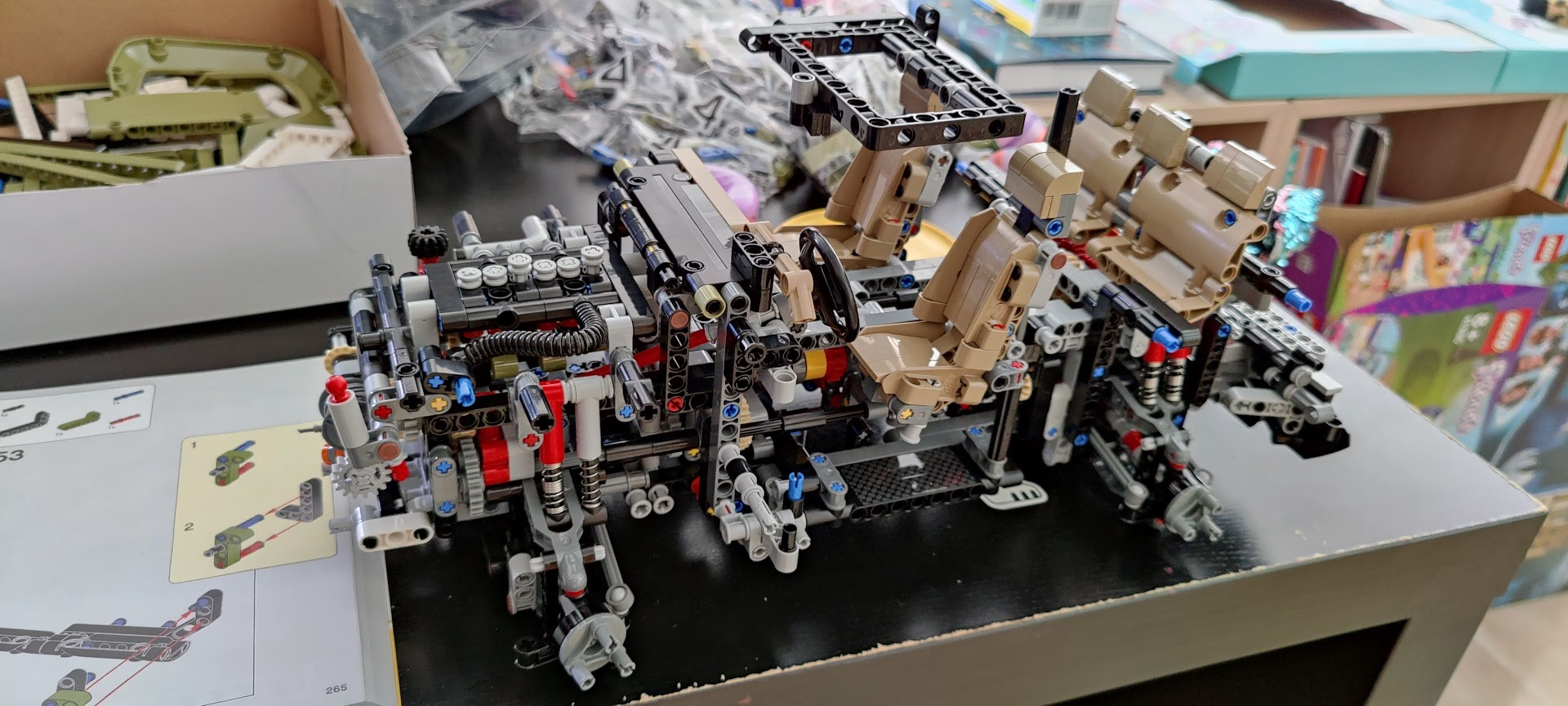 Jonathan's red motorbike has real shocks, gears, a turning front wheel and a bike stand. We thought it was pretty complicated until Jonathan opened the Path Finder set with it's 2573 pieces and elaborate detailing of the engine and interior.