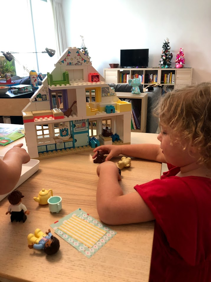 The girls each got a set as a present and Jonathan went and bought some 10+ kits for himself. Jonathan says doing them has been some of the most peaceful hours he can remember. I built MsI's Duplo House Kit with MsI helping where she could and then I helped everyone else when they panicked thinking that they had lost a piece of their Lego.