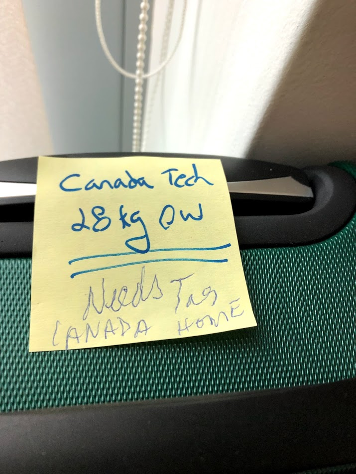 One of the Singapore bags, got a new label of "Quarantine Hotel" when we left the Raffles Hotel, because it had toys, bathroom stuff, little pillows and blankies in it. Now we had 1 luggage that said "Singapore" and 2 luggage for the "Quarantine Hotel" in Vancouver.