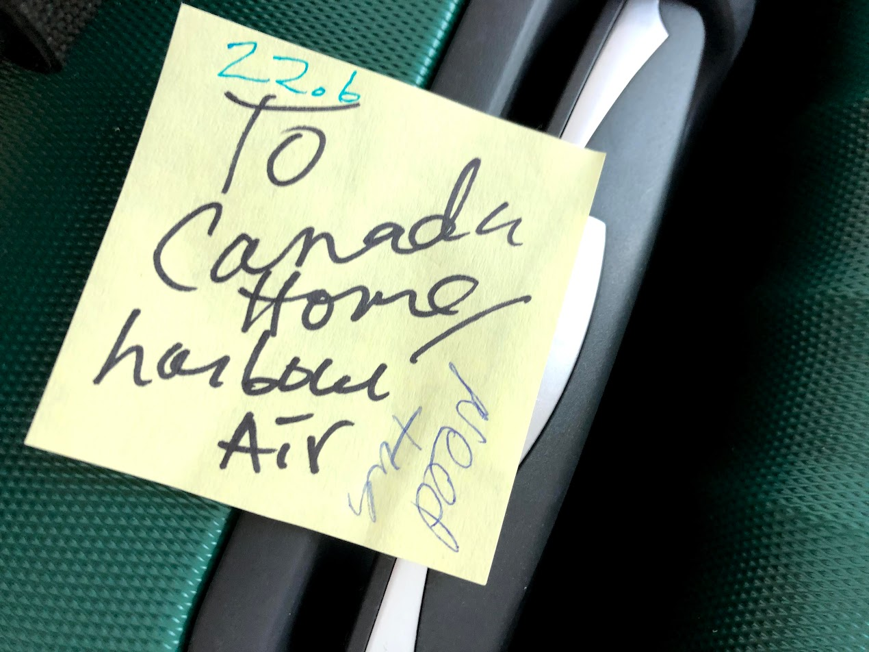 The remaining 7 bags were labelled "Canada Home / Harbour Air." We were hoping Harbour Air would store the extra 7 bags for the 4 days before we took our Harbour Air flight to the island. In the end we just took them with us to the Hotel, it seemed too complicated to figure out getting them to Harbour Air at the time. I just shoved them in the closet and didn't open them, so it was well worth the sorting.