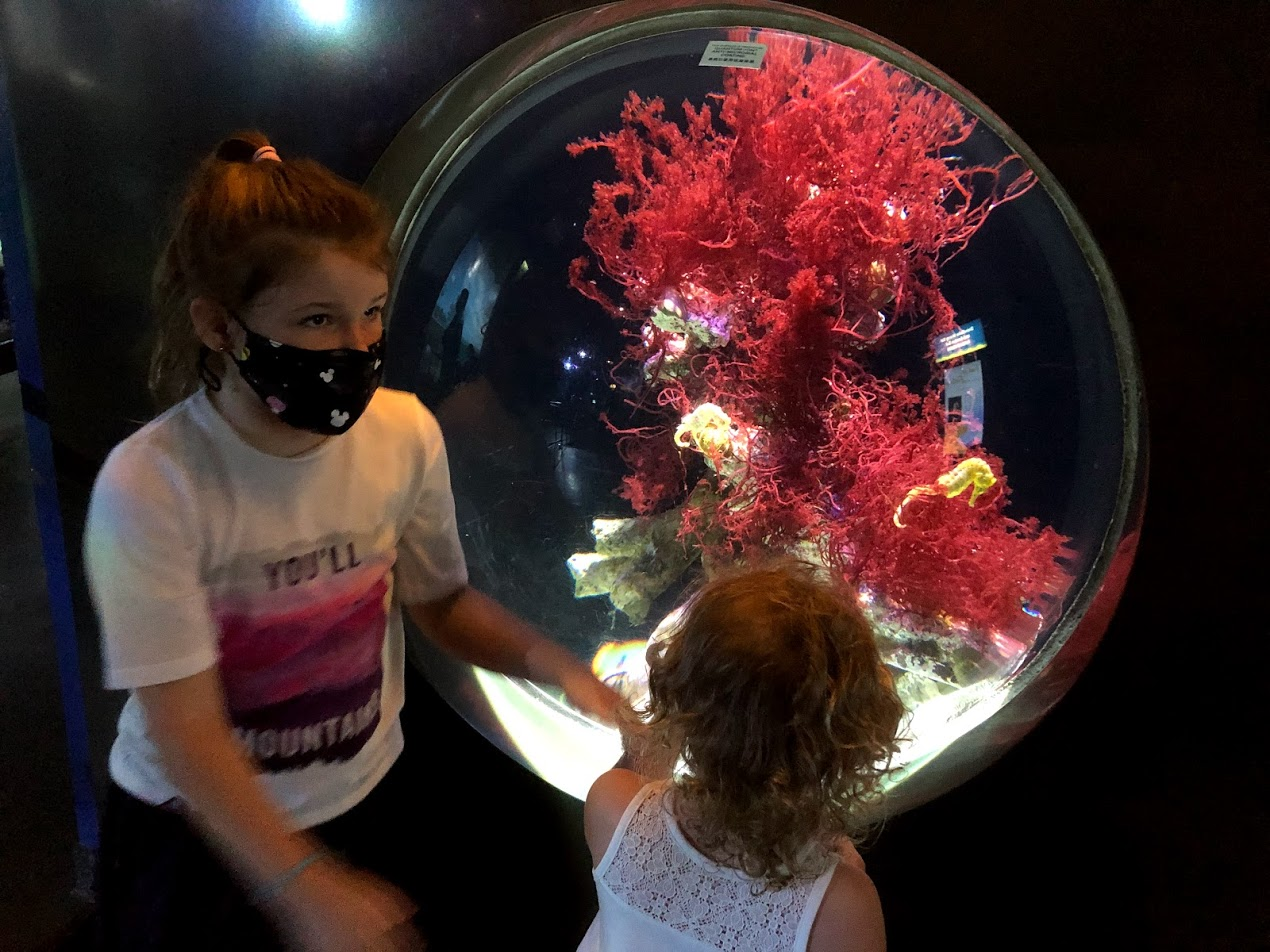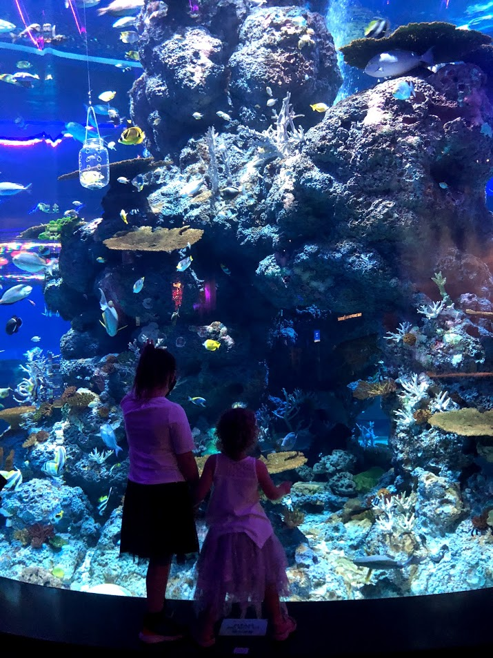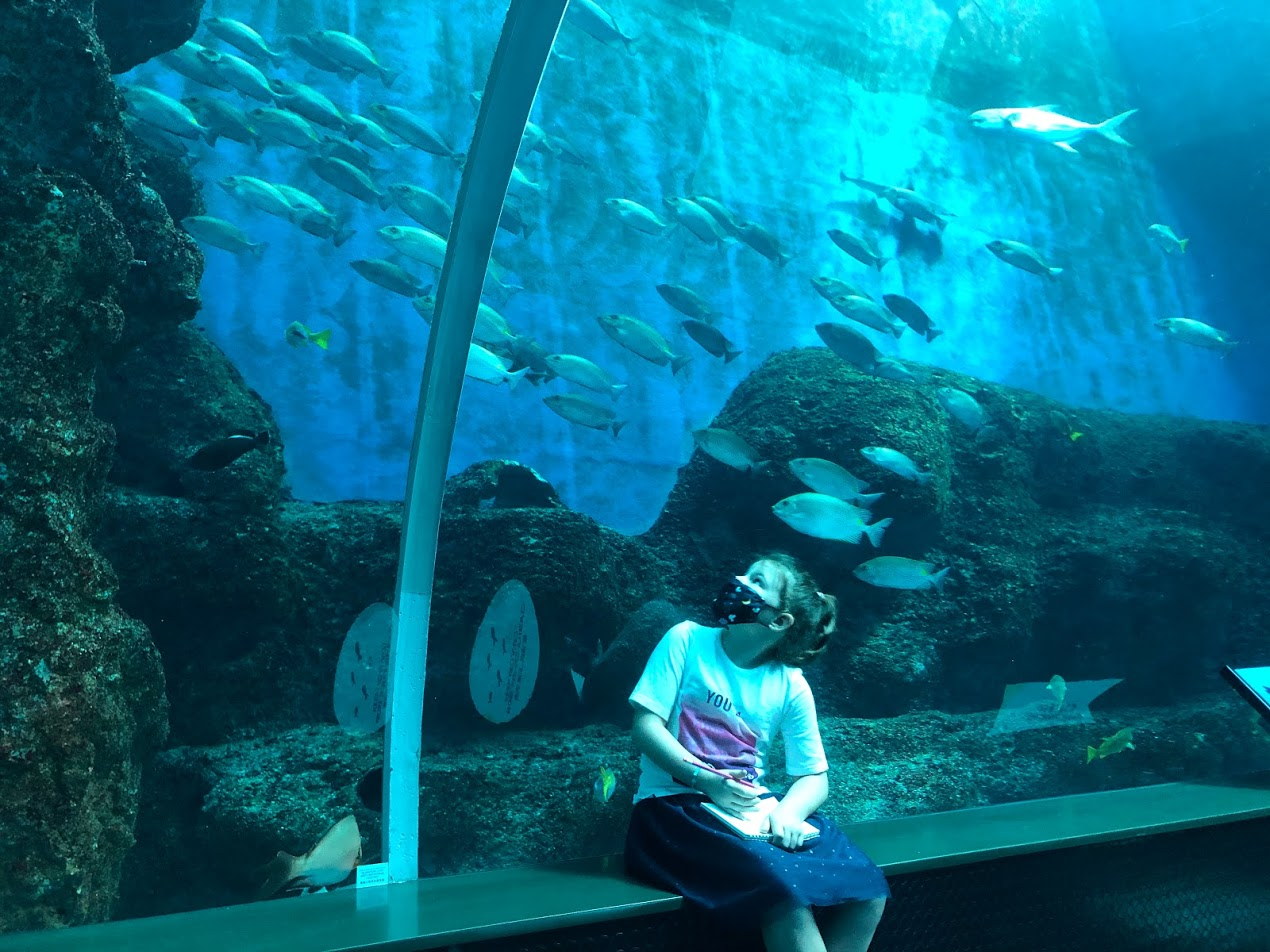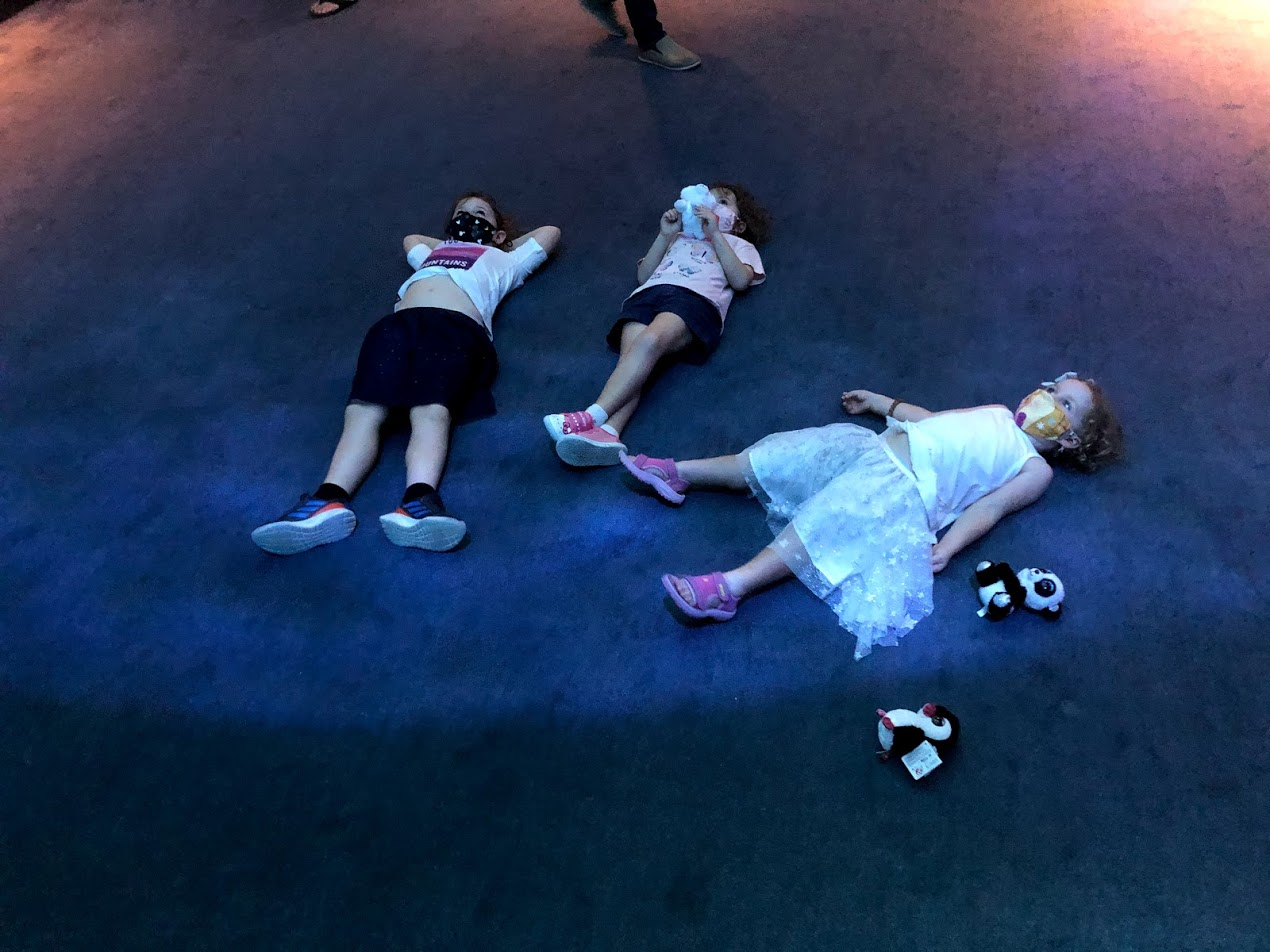 We know that there is a no sitting rule in the Aquarium due to Covid, but the girls figured lying on the floor to watch the fish and rays glide across the dome above their heads didn't count. Eventually they were told to move along, but we noticed that staff were a lot more relaxed than they were on previous visits, probably because Singapore is in Phase 3, the most relaxed of Covid restrictions currently.