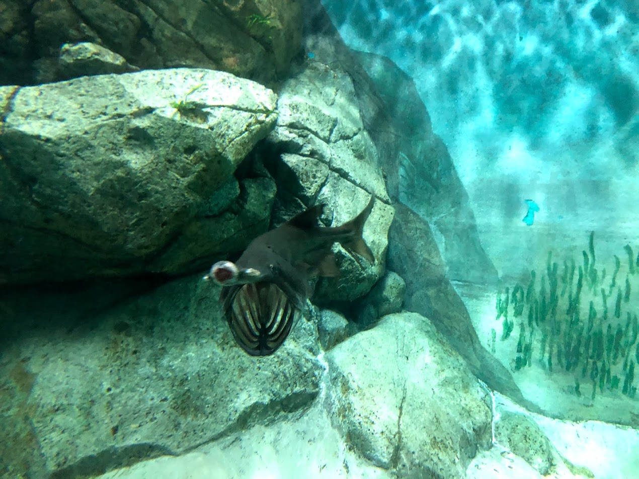 We lucked out and saw one of the scuba divers changing tank filters. We watched him for quite a while.