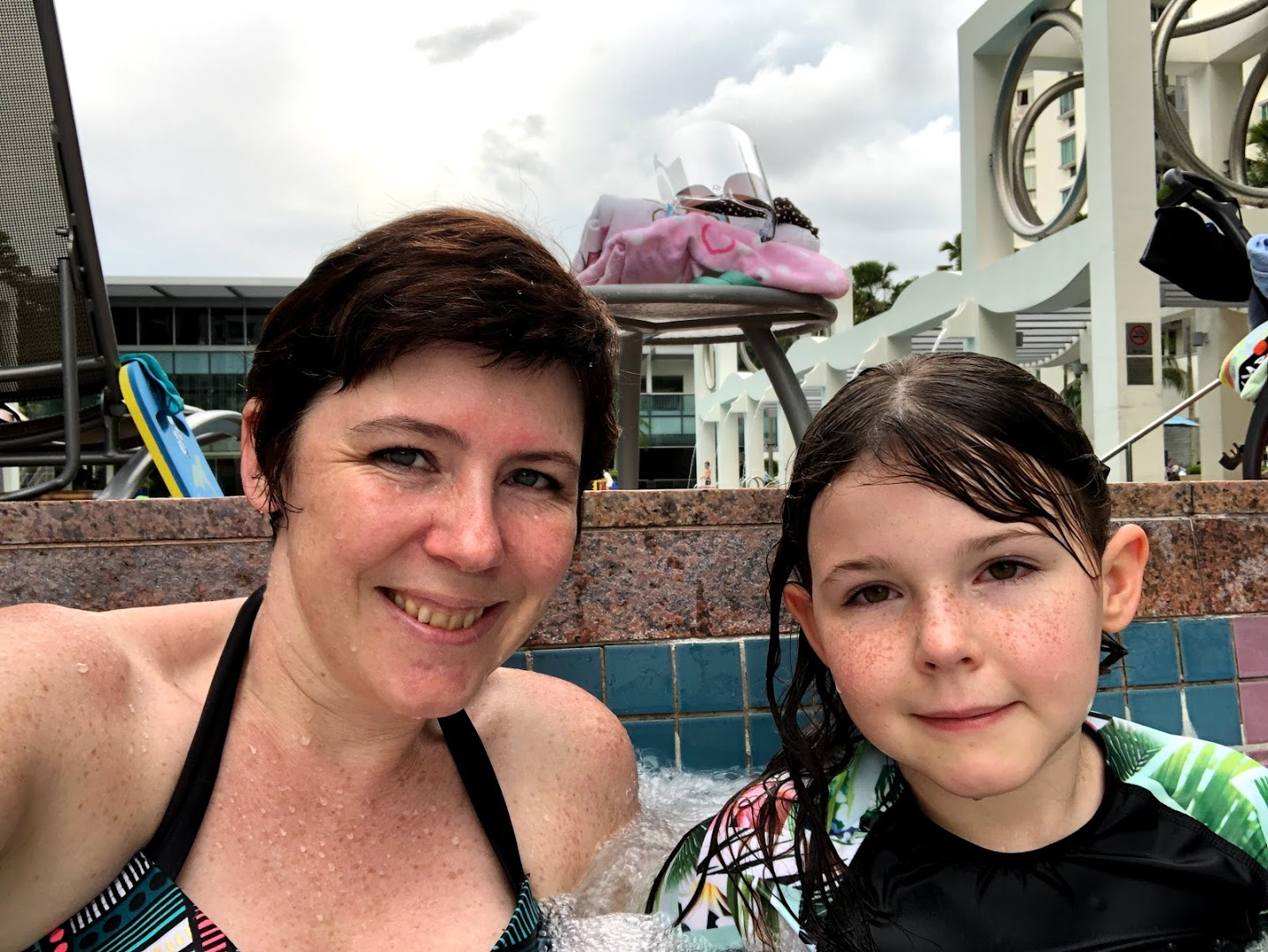We wear masks everywhere - even when we're just heading the 100 feet or so to the pool. We hardly notice wearing a mask anymore. MsE is the only one who prefers a face shield; Kids can opt for a face shield instead of a mask. I get her to wear a mask if we will be in close quarters like on the MRT (Subway) or bus. The longest period we've worn masks is about 5 hours - when us girls went to Universal Studios.