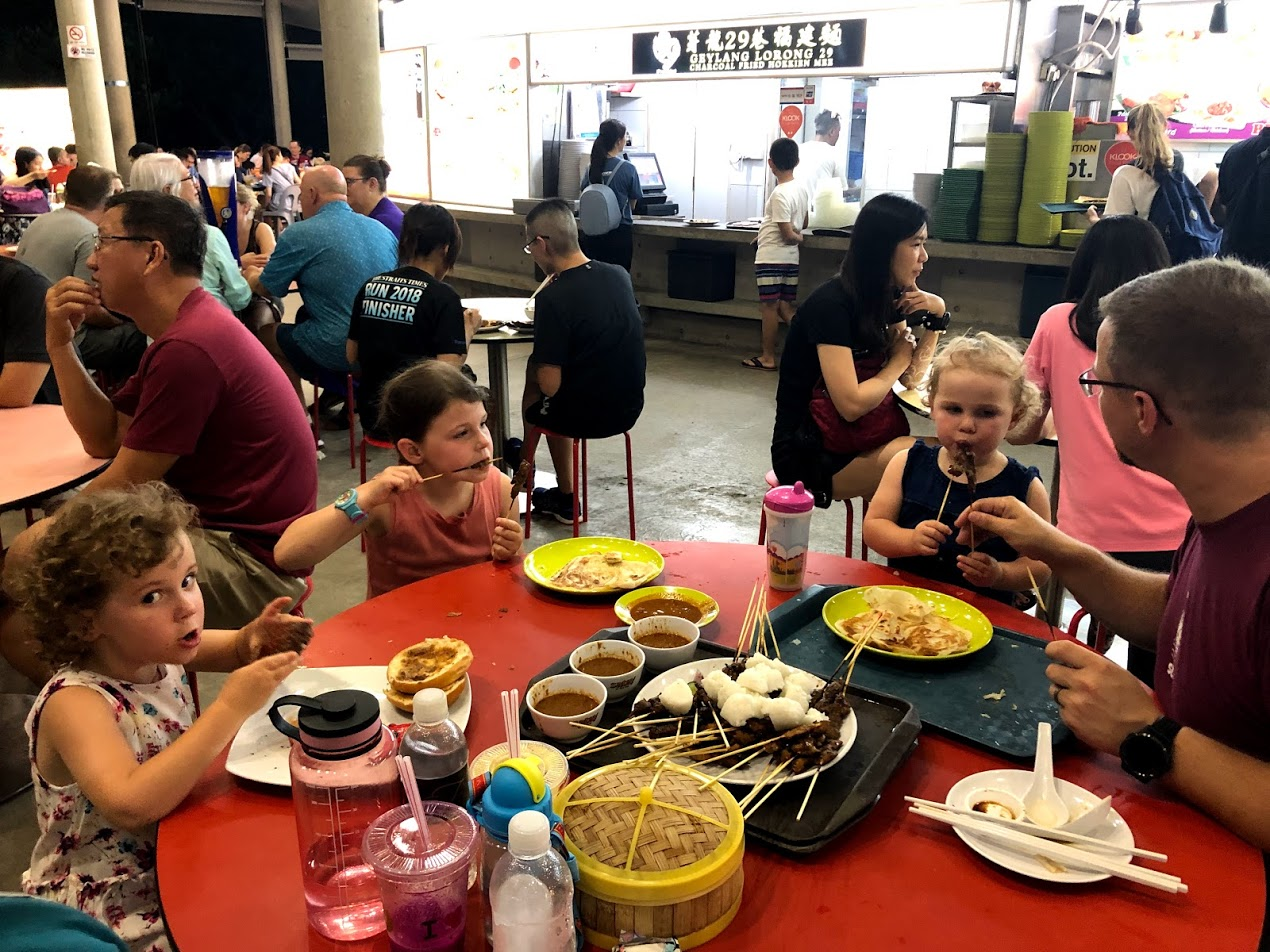 First we had our feast. There's an element of the Thanksgiving to the festival, with gathering for the family dinner. We love the Food Court at the Gardens, "Satay at the Bay", so we ordered all our favorites from various stall: