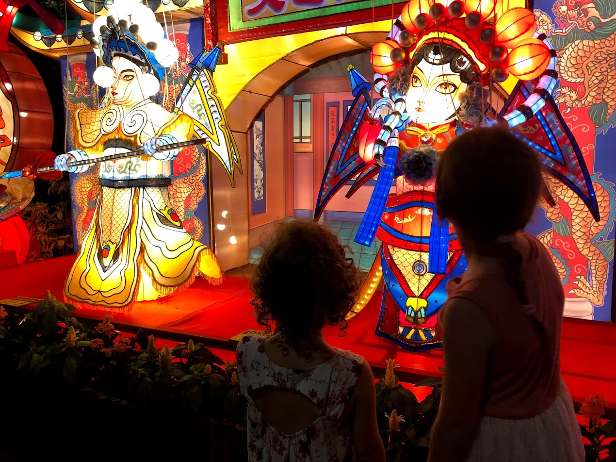 Each act was introduced to explain the story we were about to see, first in English and then in Chinese. They were all traditional stories about the moon. We saw three acts. The girls would have stayed a lot longer, but we hadn't even seen the lanterns on the water yet. Amazingly, both the Gardens and this Lantern event is totally free.