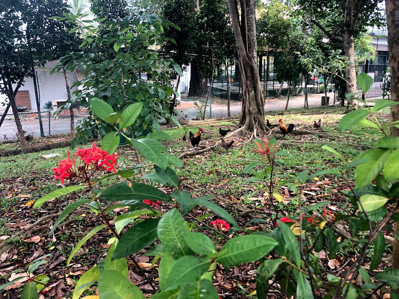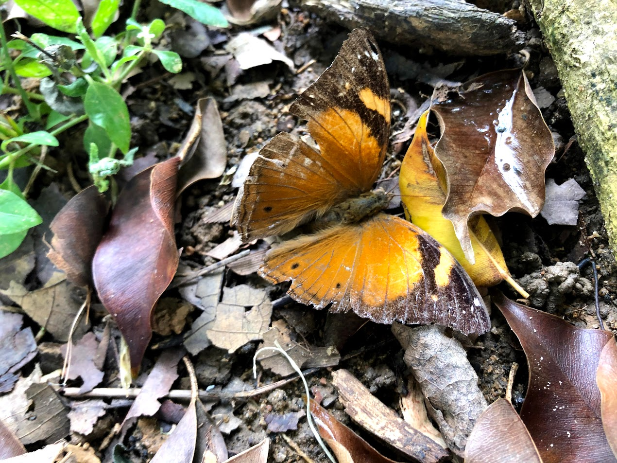While we were making sure we didn't make the roosters nervous by getting too close to the Jungle Fowl, we also saw a butterfly on the ground. It looked a little beat up with slightly damaged wings, but it was still alive, and gave MsI and me a chance to get a really good look at it.