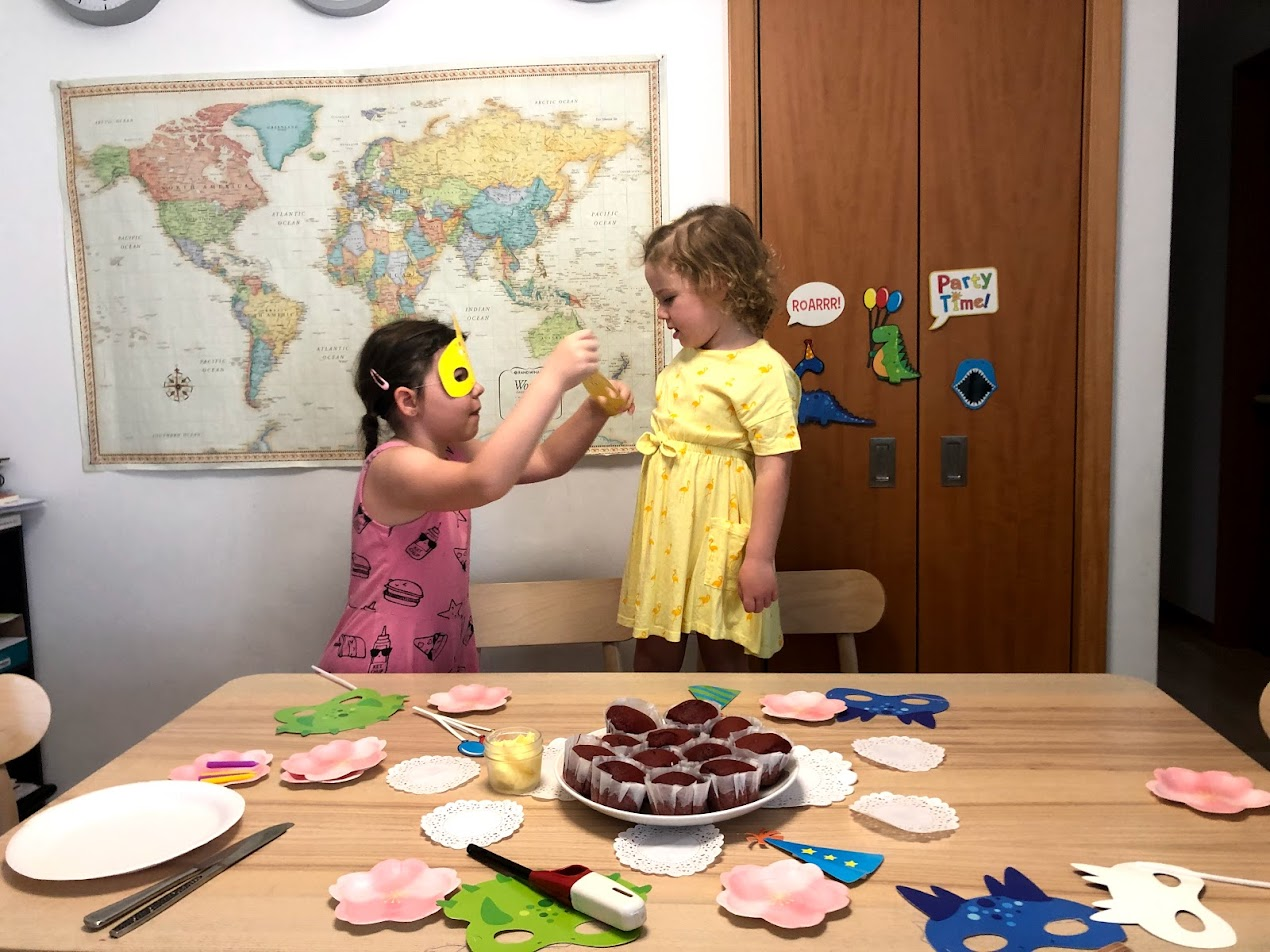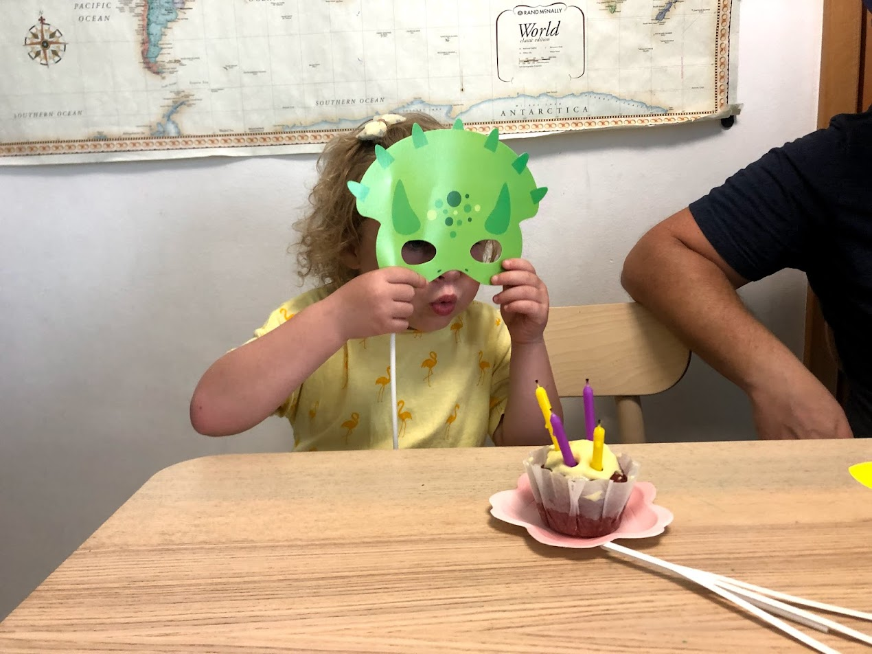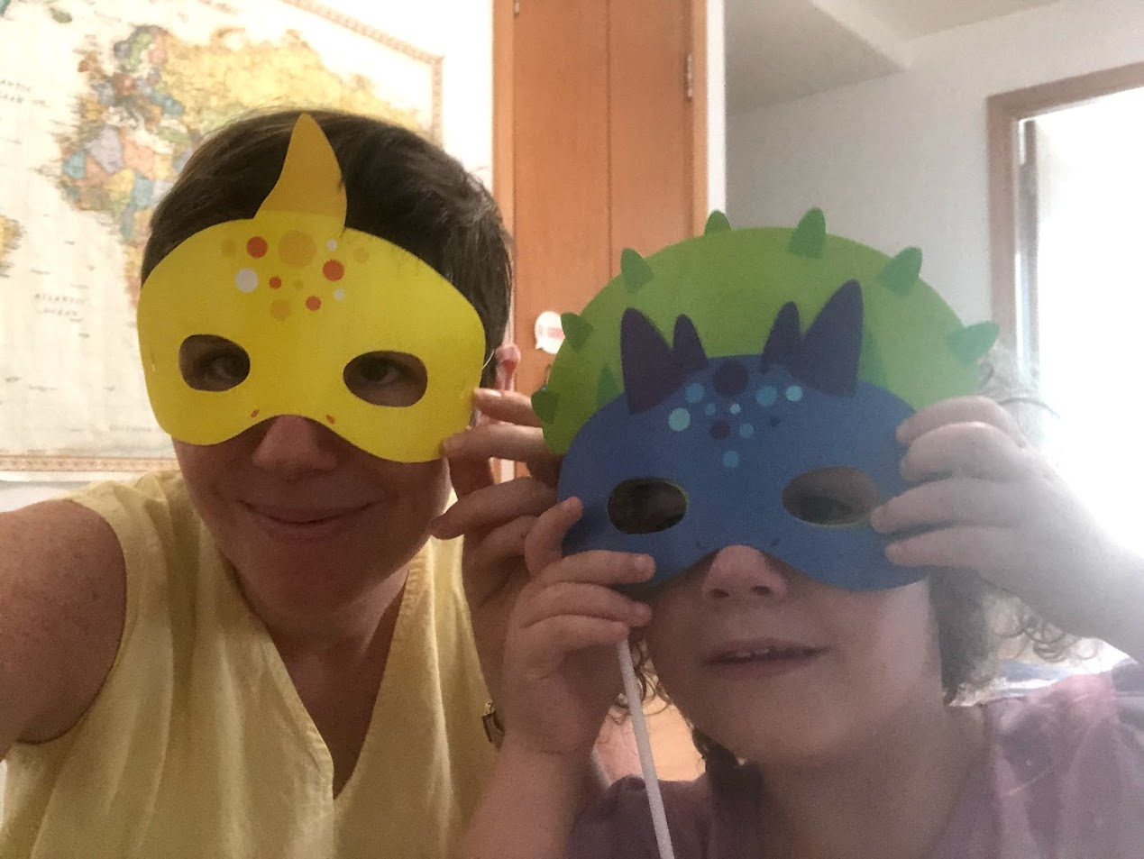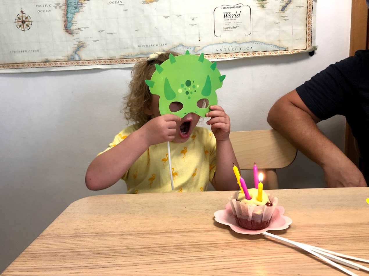 Auntie made us chocolate muffins for breakfast. We donned our dinosaur masks and had a roaring good time.