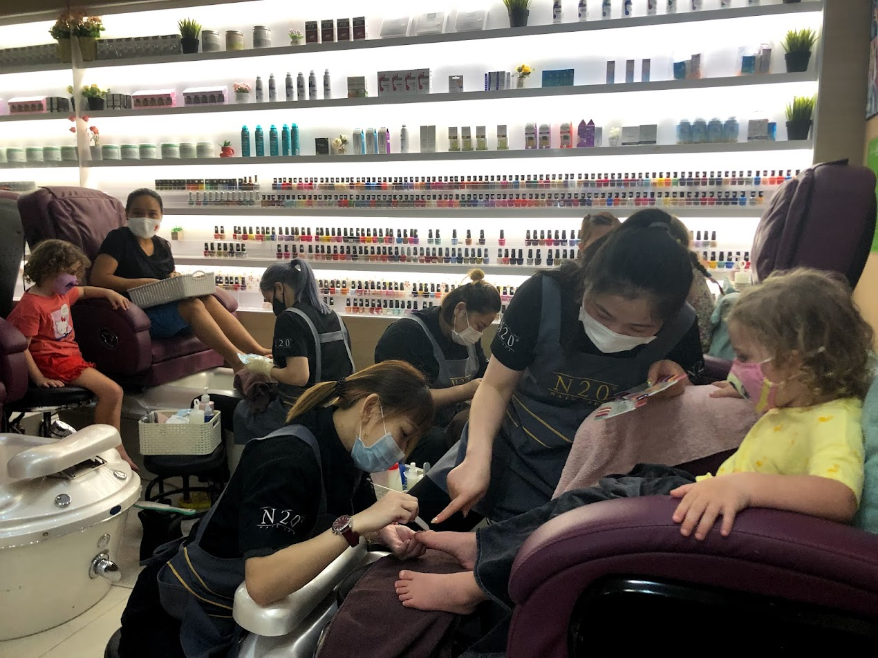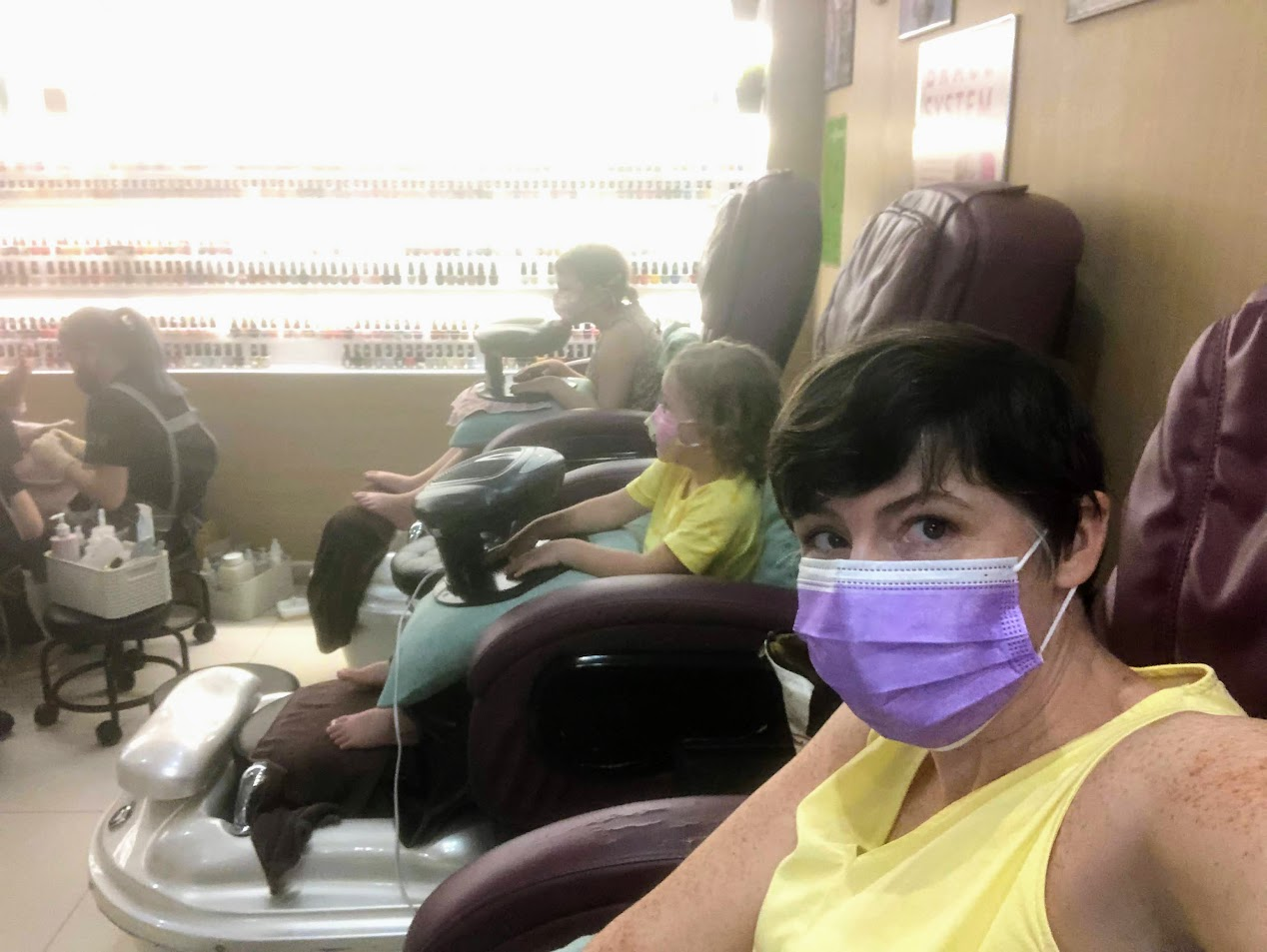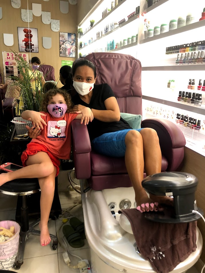 After MsC's appointment, came our special treat - Daddy had scheduled a trip for all us girls to the Nail Salon. We a good go of trying to use up all of our pre-paid Pedicure Package, but we still have a few on credit that we should to give away.