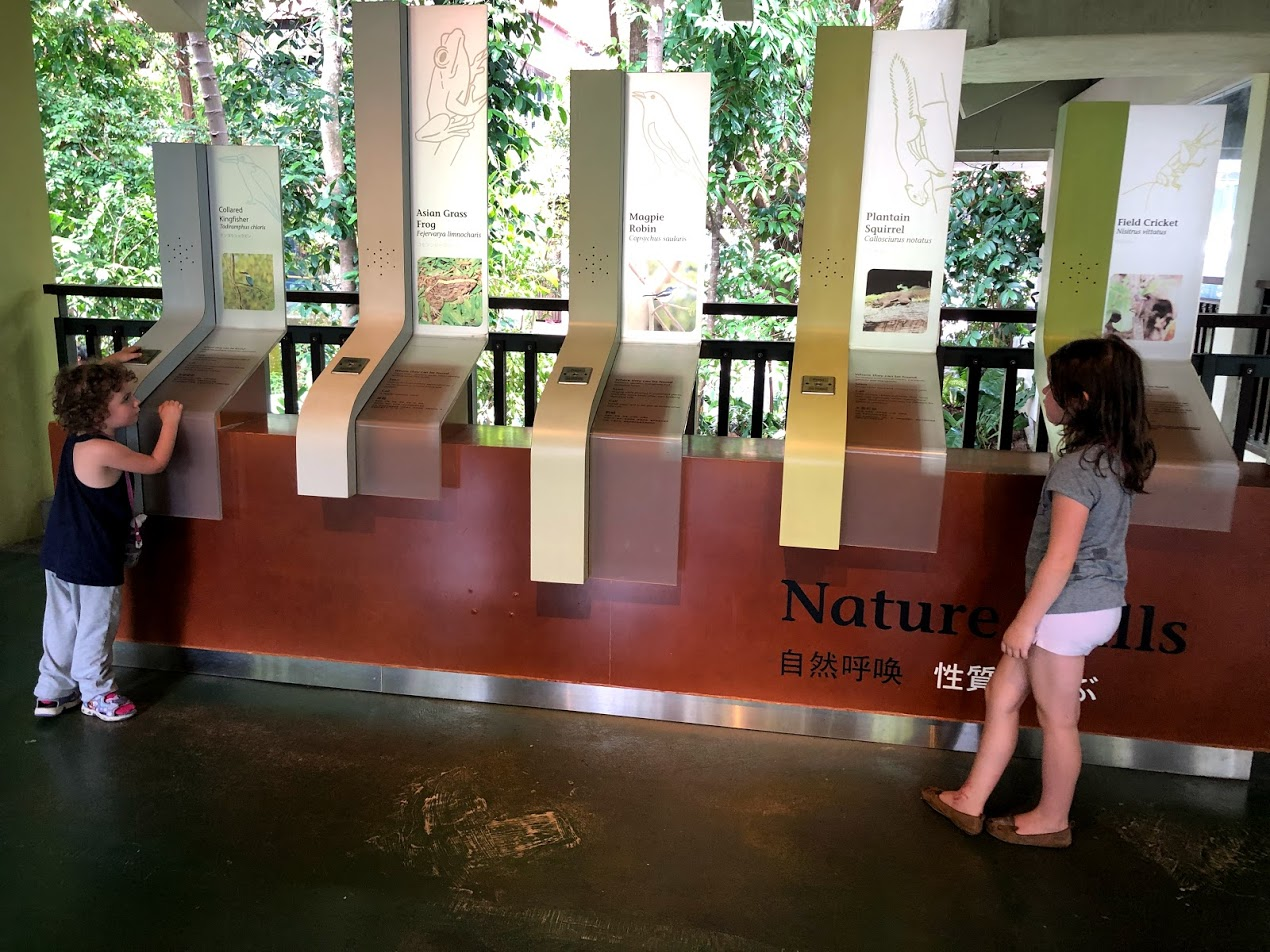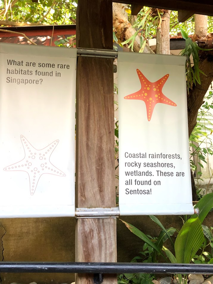 Right beside Subway and the Cable Car Station is Sentosa's Nature Discovery Centre. This little gem is a free 2-story centre bursting with information about Singapore. Tracking down all the information it holds in real life will probably take us all year. One visit we used the animal calls centre and then listened carefully to the animals on our walk. Another time we focused on trees. There are 5 habitats highlighted on the island; we will spend a day and adventure out to each one eventually.