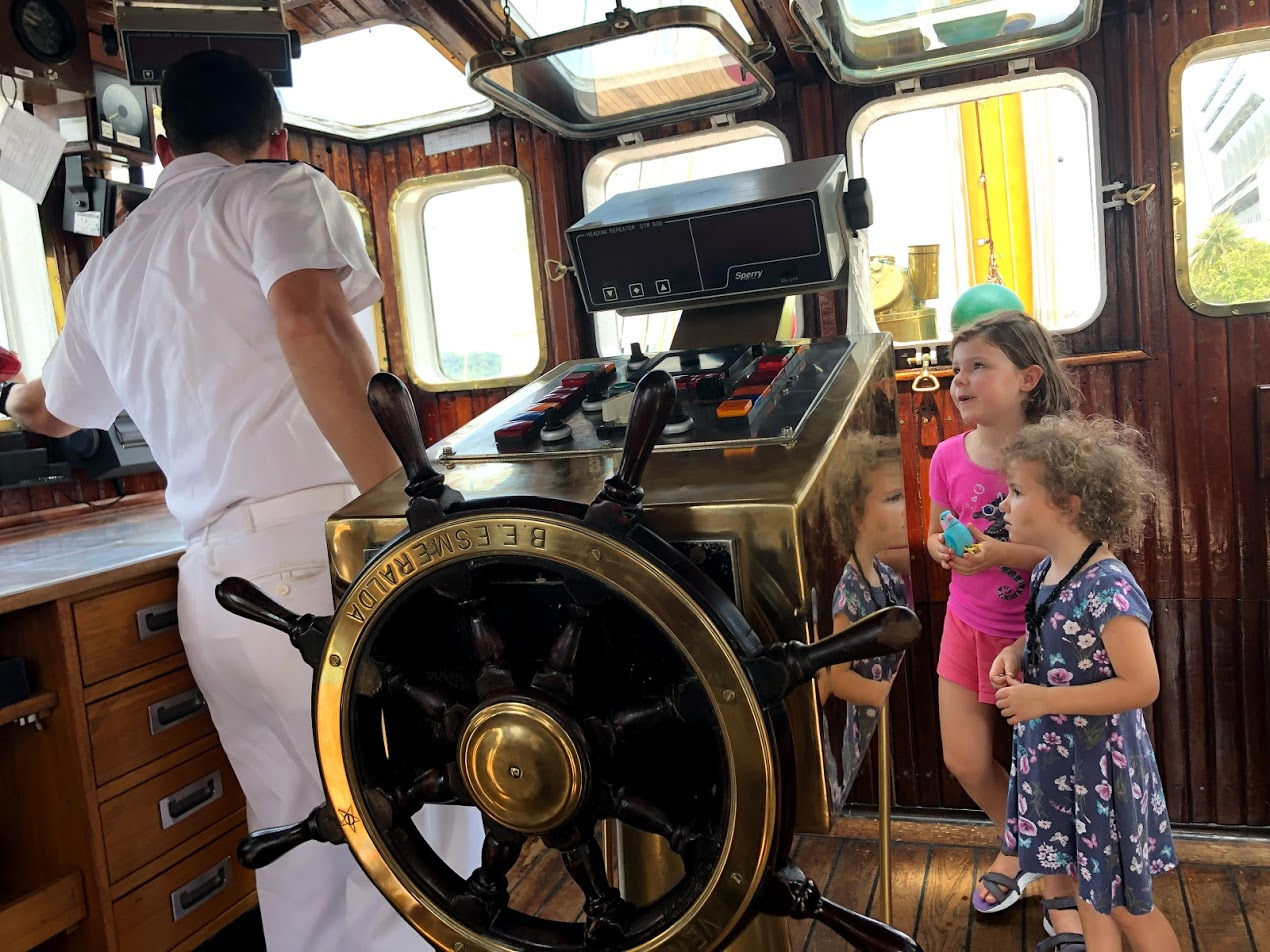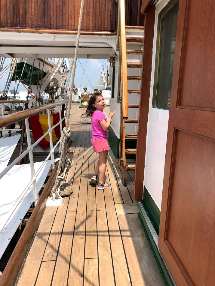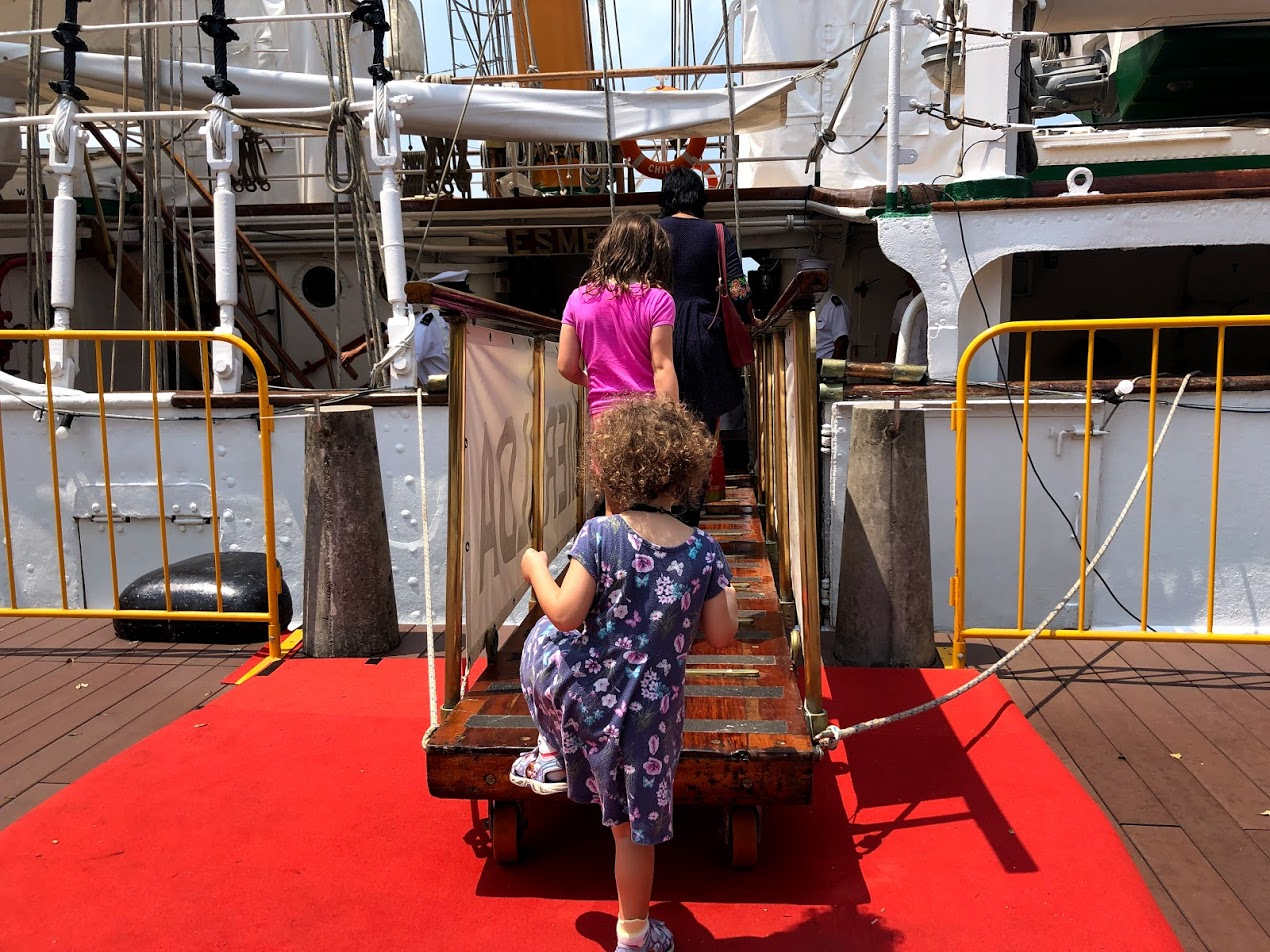 It was actually the largest tall ship I've ever seen. We went for a closer look and the crew of the Esmeralda called us aboard. They were giving free tours. Us big girls found the ship pretty amazing. Ms.I was concerned, because we had mentioned "Pirates". She insisted on being carried while aboard just to be on the safe side.