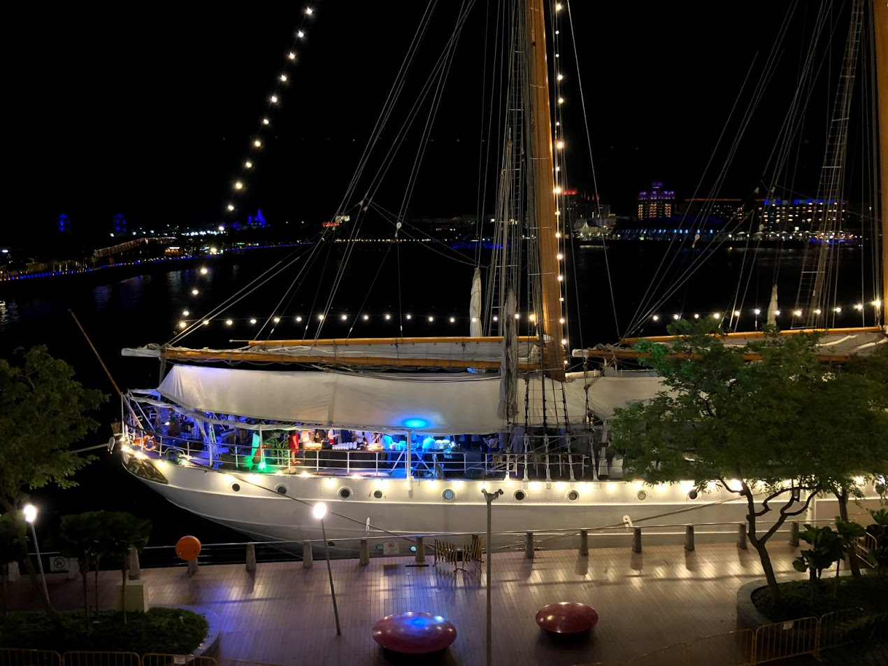 We walked by later in the evening to show Jonathan the ship. The Esmeralda was hosting a dinner party complete with a live band - What a place for a party! The deck is certainly large enough.