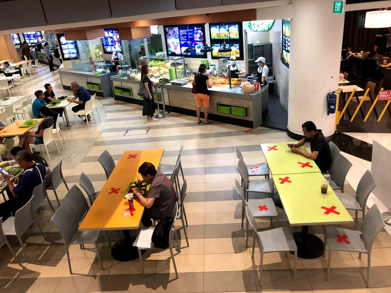 Above April 4: I think this Saturday was the last time Jonathan and I ate in a restaurant. We didn't eat in the food court shown above. We ate at Hans im Gluck our favorite restaurant. The government had already mandated that all tables and seating be spaced for social distancing. The hostess pointed out that they would be available for Take Away and Delivery once they closed on the Monday for the Circuit Breaker.