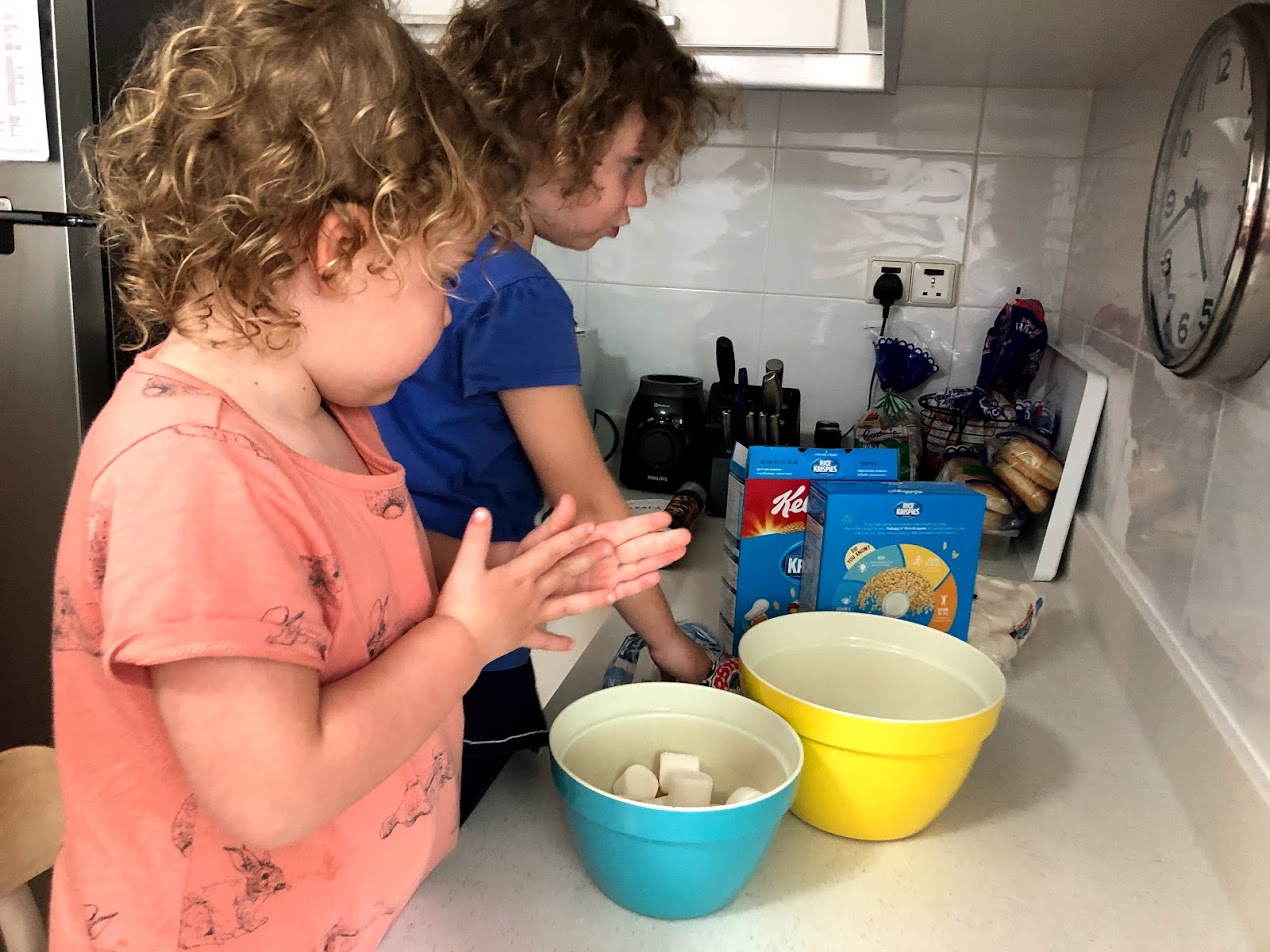 MsI loves to bake and is eager to help put the groceries away when the Amazon Prime delivery arrives. She's the only person in the house who usually puts her things away. She doesn't like a messy room and knows where everything goes. Lately she's started dressing herself and will suddenly arrive in a new set of clothes if she gets her shirt wet.