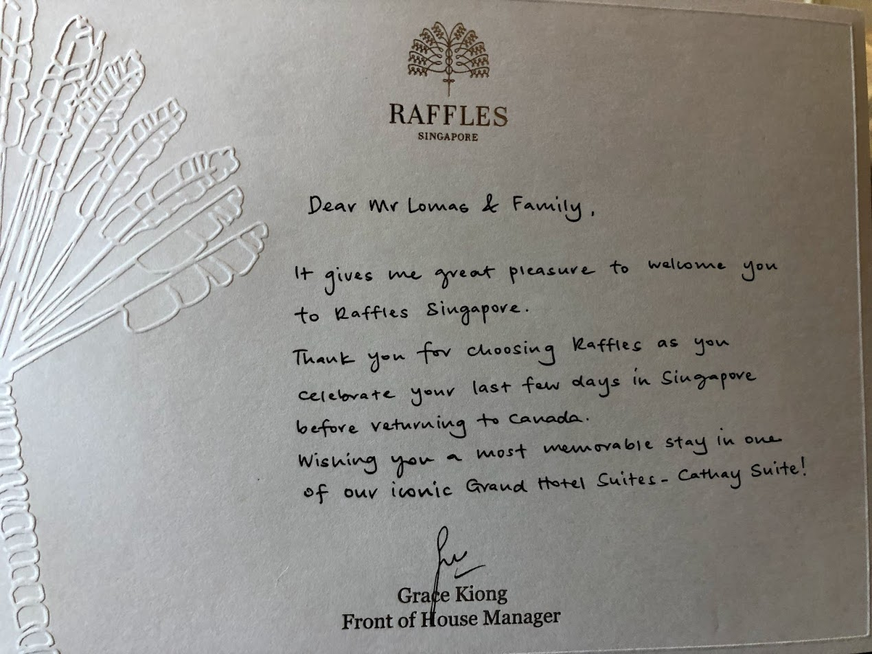 When the hotel found out these were our last nights in Singapore, they upgraded us to one of the four "Grand Hotel Suites." We had the Cathay Suite.