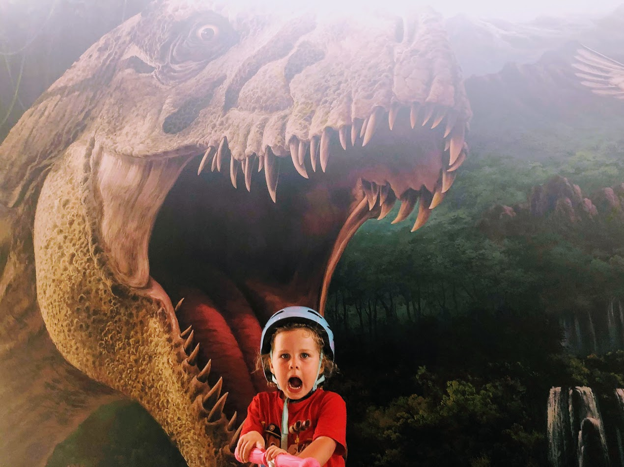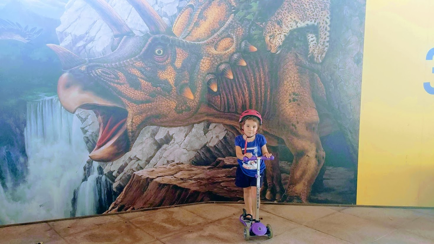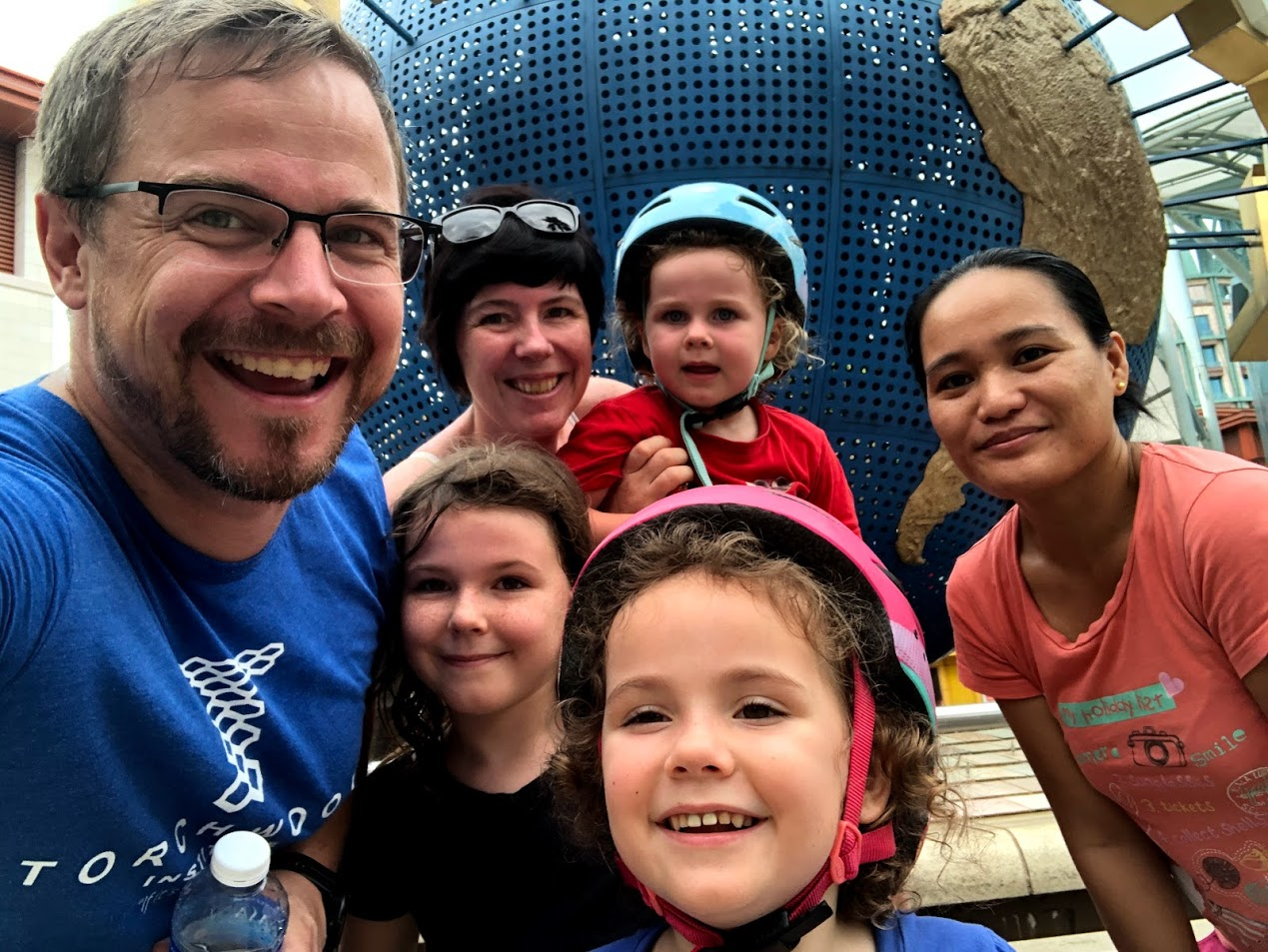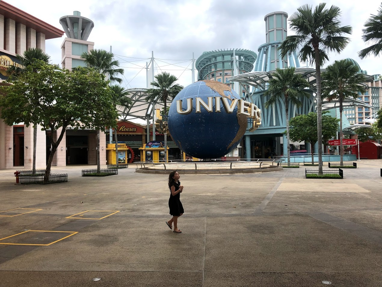 We still fit in lots of fun! Lots of sunshine, exercise and fresh air. We took silly photos with the Dinosaur Murals - I think MsI's is the best! - And MsE insisted on a selfie with the Universal Studios Globe. It looked different without it's fountain water.