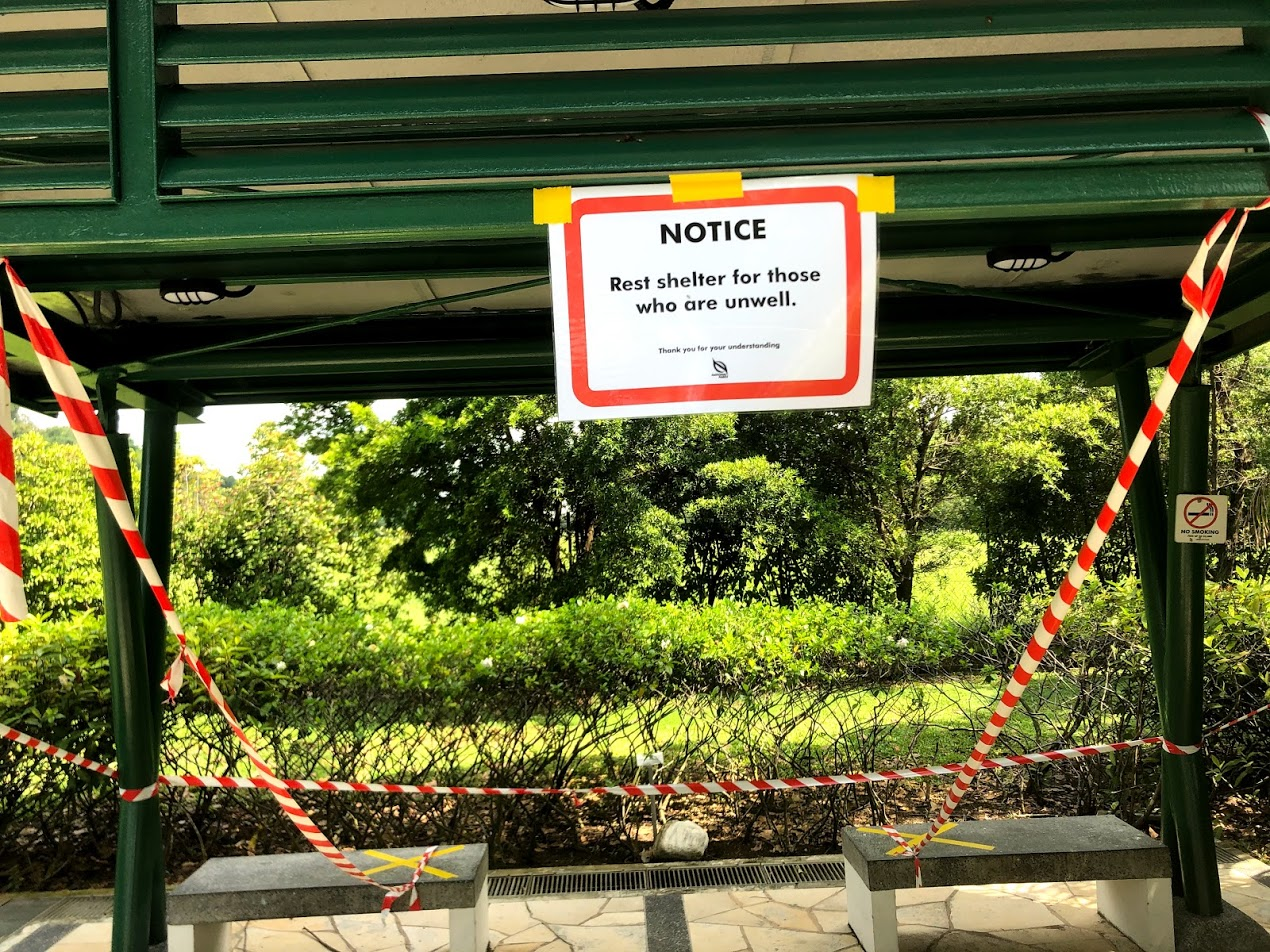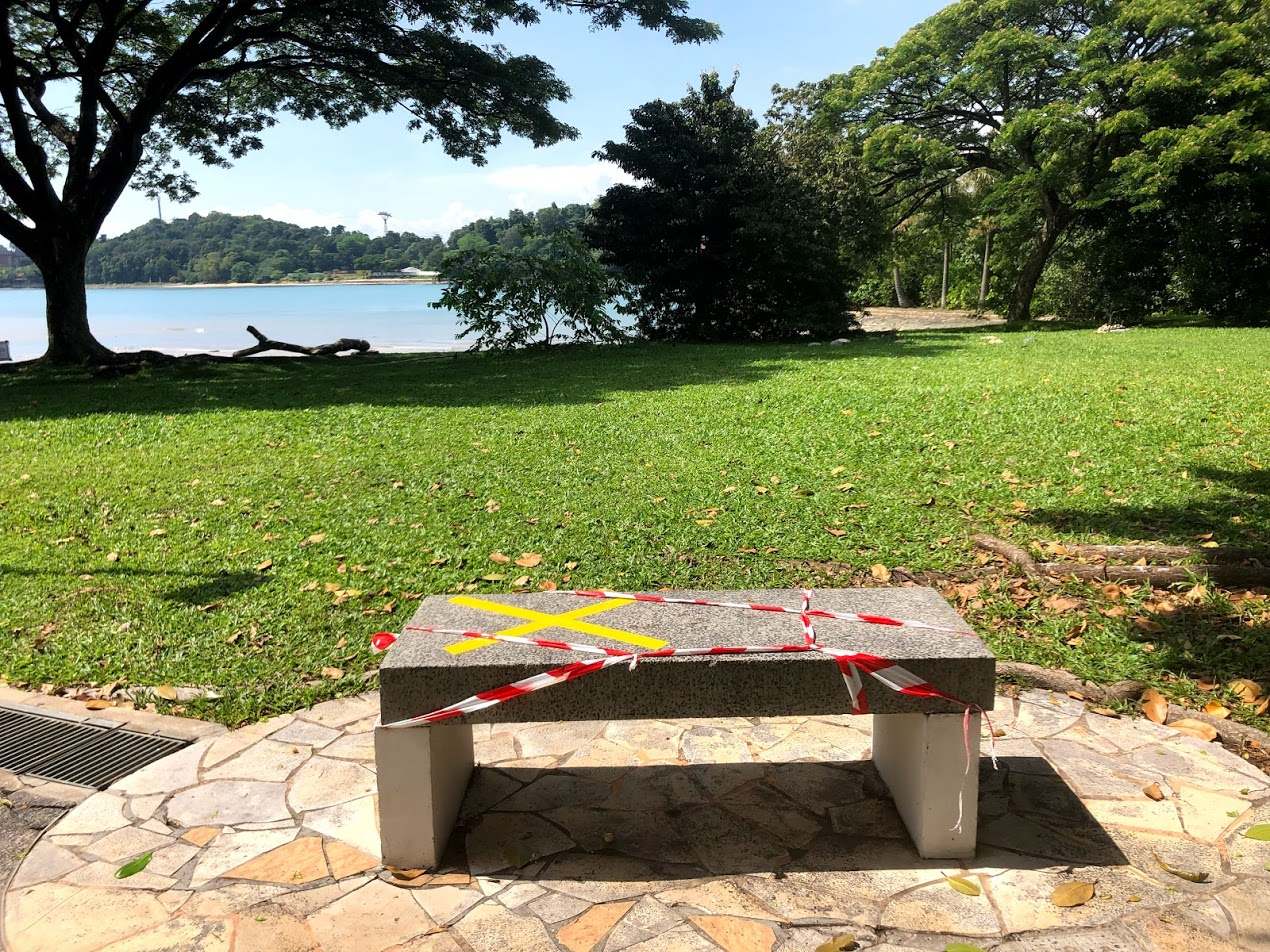 - No sitting on benches.
