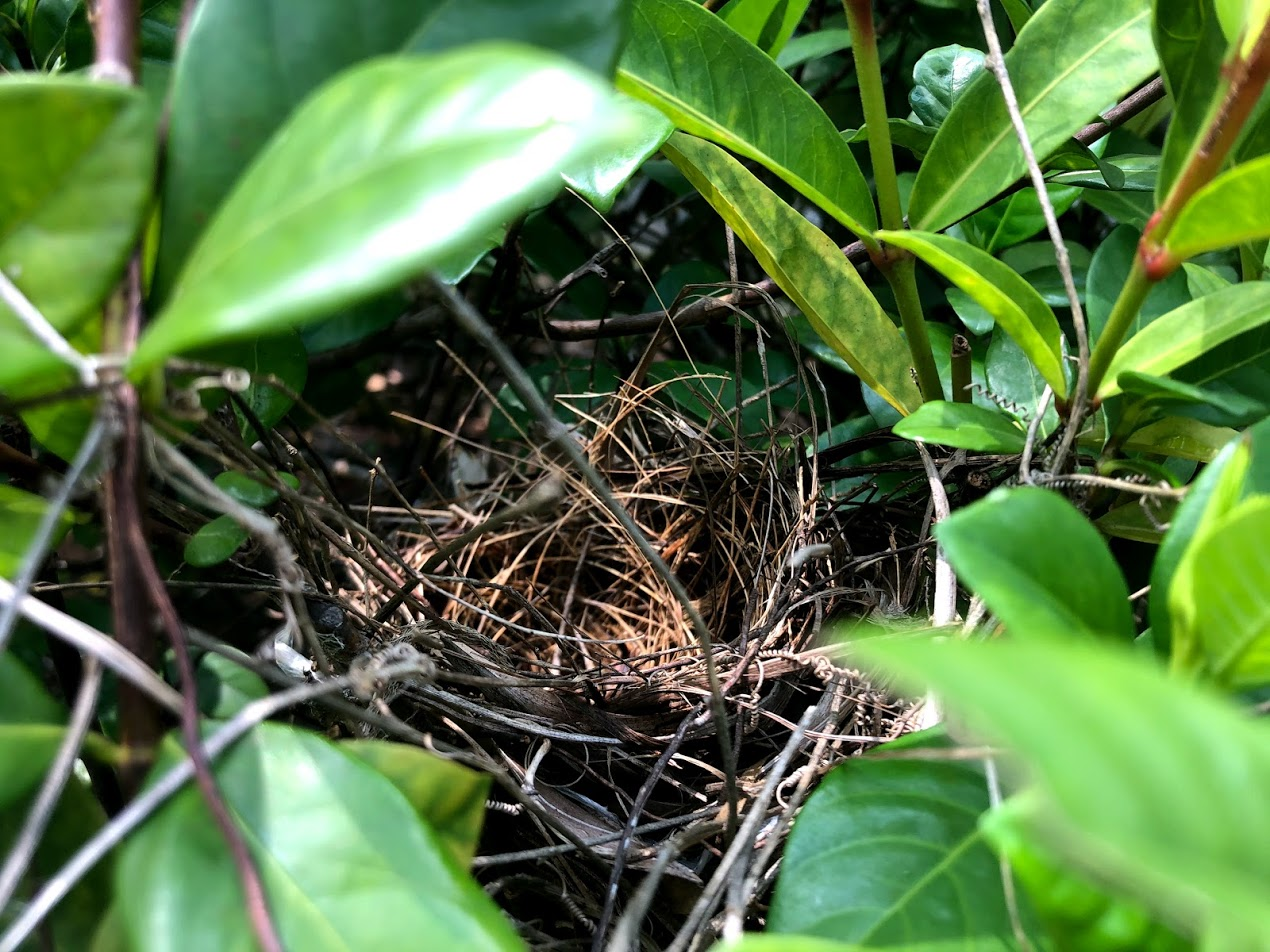 We sought out the bird nest we had seen eggs in a month or 2 ago. The nest was still there, but any sign of eggs or birds was long gone.