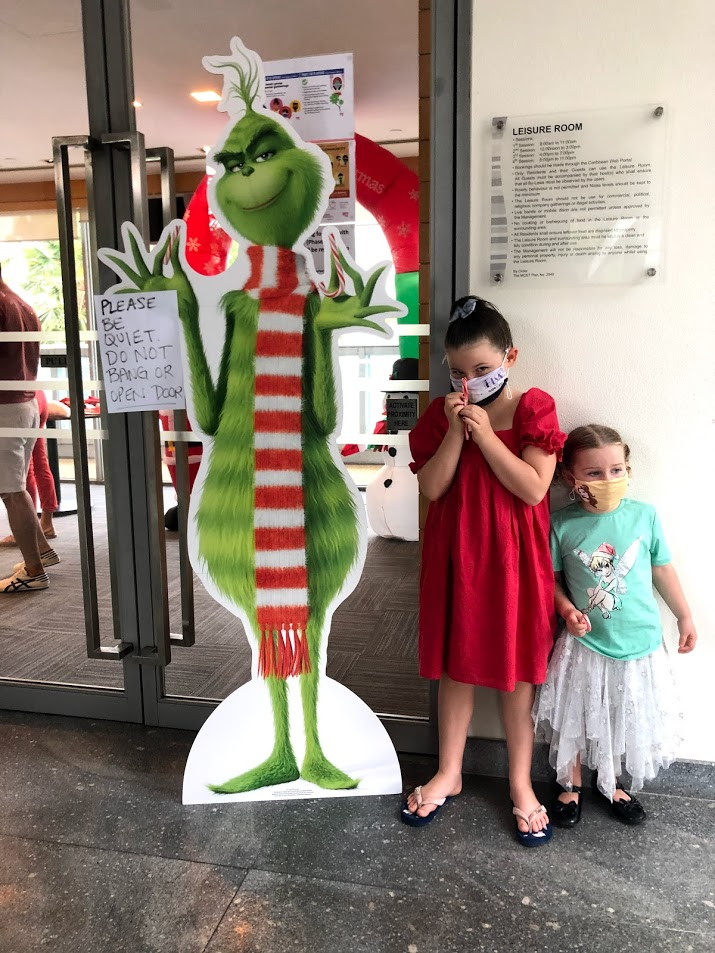 We took some photos with the Grinch too. MsE in her shyness forgot to tell Santa what she wanted for Chistmas and was quite distressed. I texted Santa's helper and Santa himself What's App'd her back to tell her he had gotten her order.