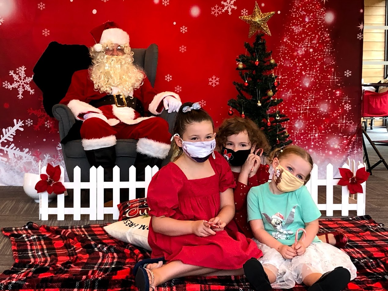 We couldn't be the cause of a long line of children clamoring to get in to Santa. We also let the girls know that there was no sitting on Santa's knee this year. Social distancing was cleverly enforced with some strategically placed pillows and a little mini fence around Santa. After they left the girls pondered whether Santa might be wearing a mask under his big beard for safety; they said they couldn't tell through all that beard.