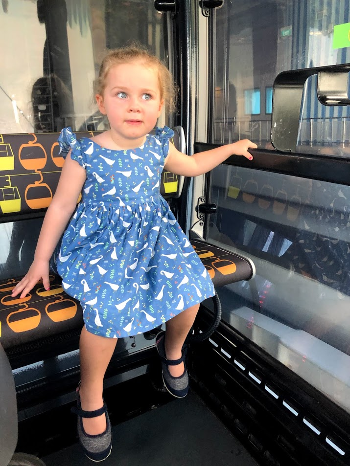 We were the only people in the Cable Car station on either side of the line and had a car all to ourselves. Children under 6 are not required to wear masks in Singapore now, as we have almost no community cases, so I slipped of MsI's mask occasionally to get a few pictures of her on our outing. MsI is quite insistent that a mask is required and I'm not going to tell her otherwise yet, but I did tell her she is okay with it off when there is no one else around.