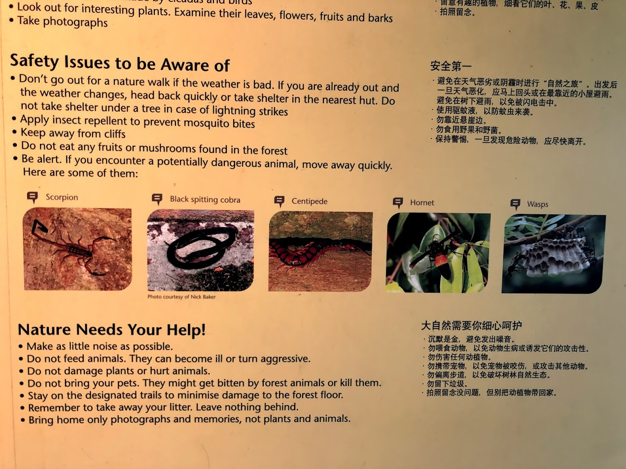 Sentosa has great signage explaining the history and nature. There's also a free 2 floor nature centre and a tree top trail. Apparently there are monkeys, but we haven't seen them. Apparently you need to get visit early in the morning to have the best chance of seeing them. We have seen lots of other things like African Snails, Hornbills (birds), ... other interesting plants and insects.