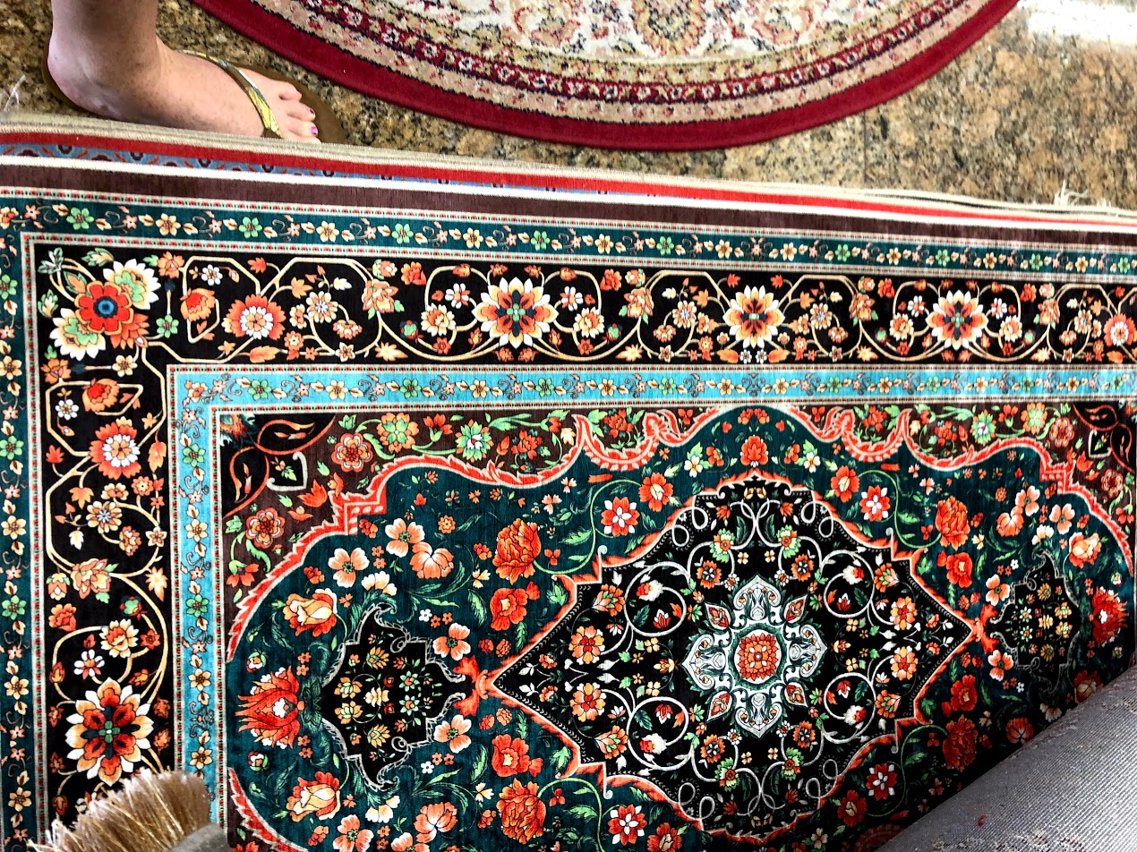 The one with the center motif from Tebriz is for our living room and the bottom one that reminds me of a Peacock from Isfahan is for our library in the basement. Basically we bought Jonathan's favorite and then my favorite. These pictures don't do them justice. They are beautiful.