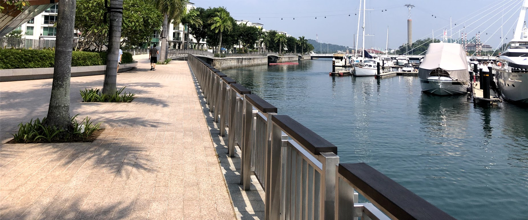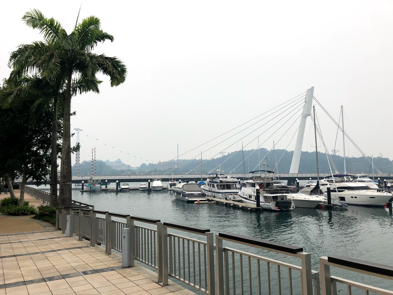 Normally it's crystal clear out here, with blue skies and water and sharp shadows from the bright sun. You can usually make out all the features on the hotels just across the water. Today it's like standing in the shade on the Boardwalk; there are no shadows. Still it's not nearly as bad as forest fire season last summer on Vancouver Island, Canada. Here we are along the ocean which seems to keep the air at least moving. At our home in Canada we were in a valley where the smoke settled, socking us in. Our condo in Singapore seems pretty air tight. I can't smell the smoke inside at all. We're just running the air conditioners and keeping the windows closed.