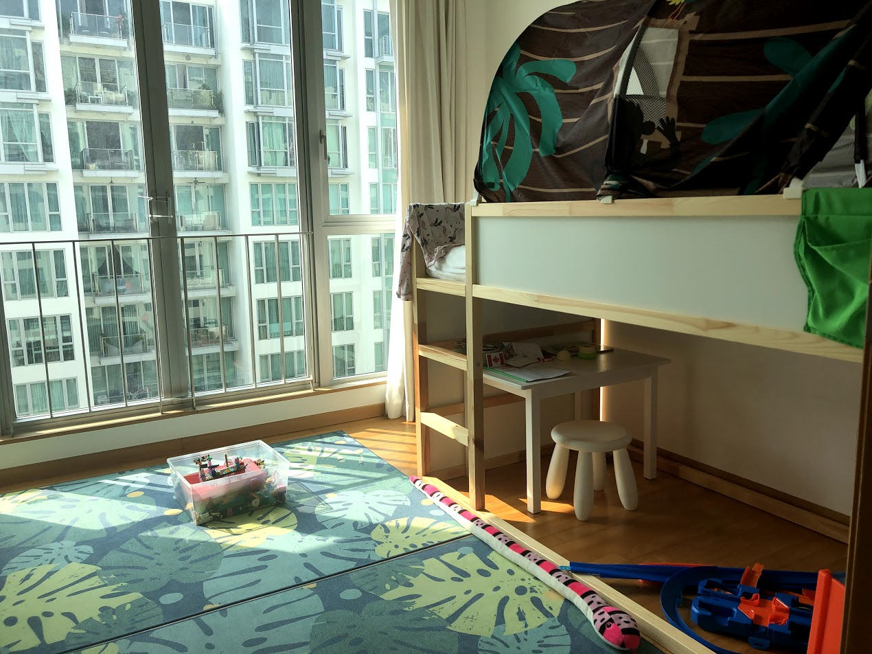 MsE's redecorating involved moving her table moved to under her bed so she has more floor space to create Lego worlds and stretch out her Hot Wheels tracks. I also put the Lego and Hot Wheels in plain sight, because MsE kept saying she had no toys - they were in the closet before. There are still ton of toys in the closet.