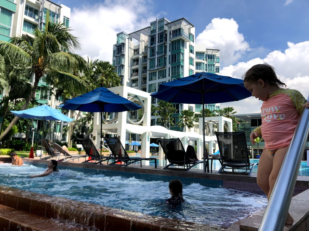 The jacuzzi isn't heated, but the small size of the pool located in full sun most of the day, means it's quite warm. It was a fun way to end our Pool Day.
