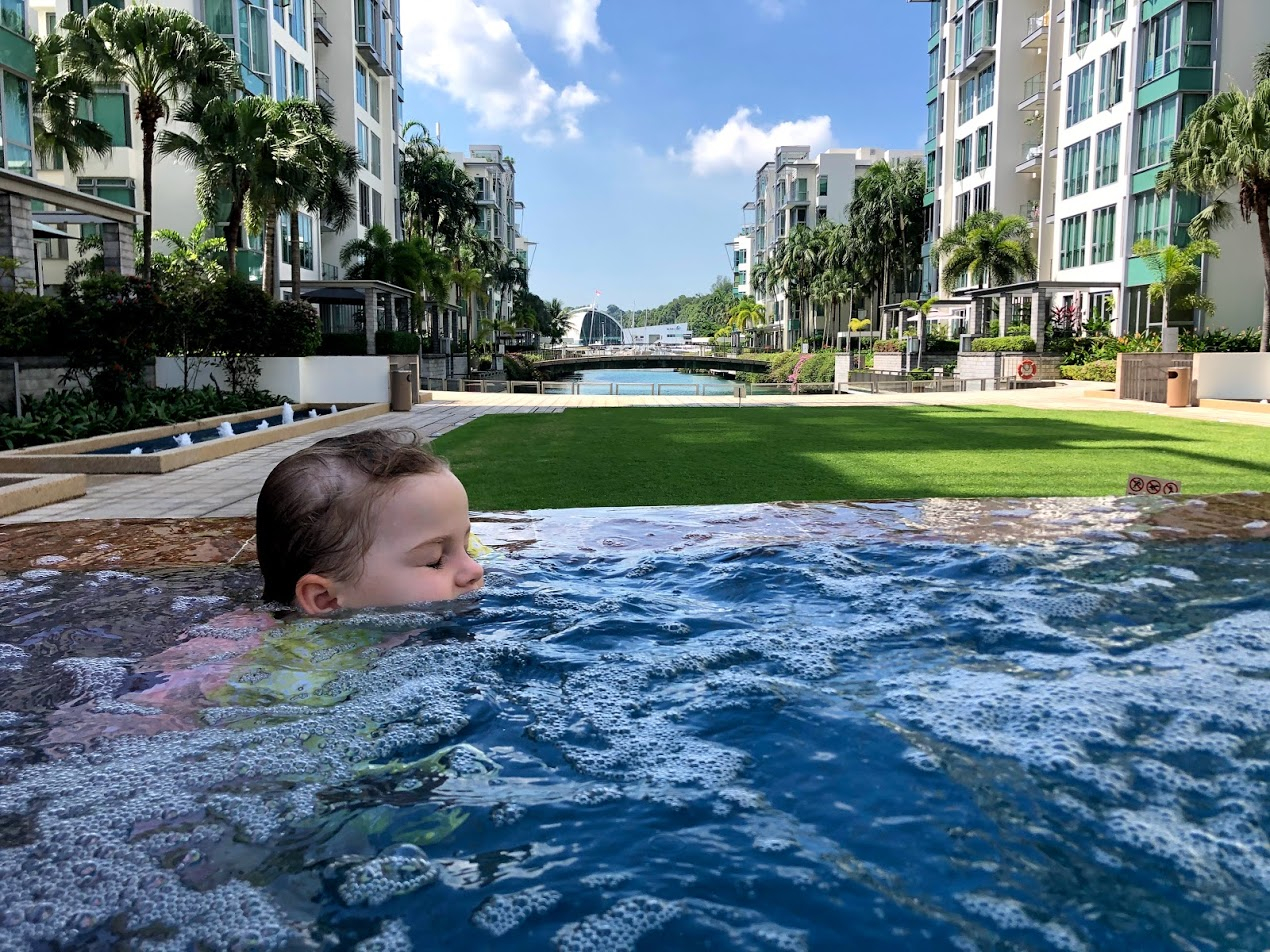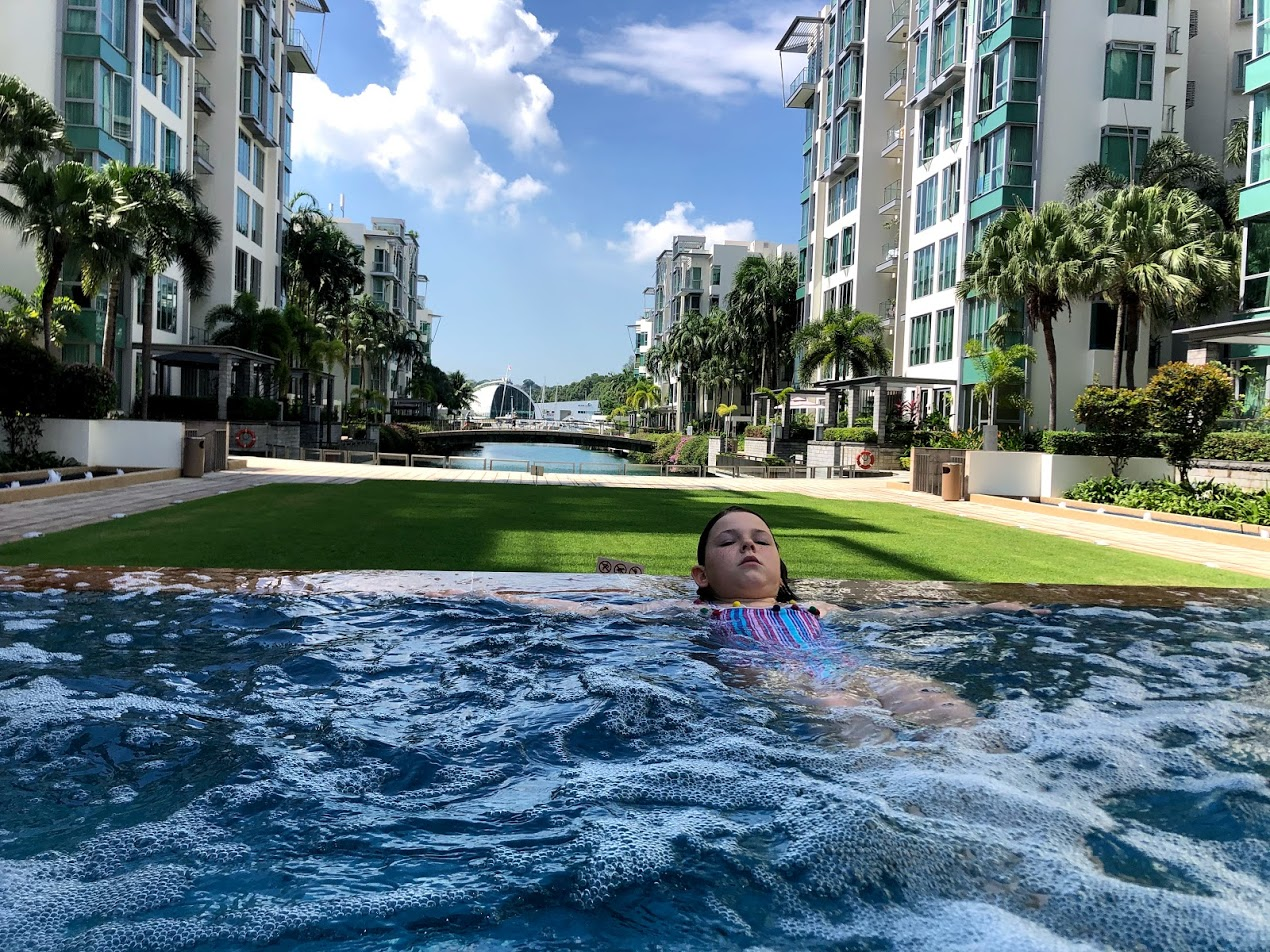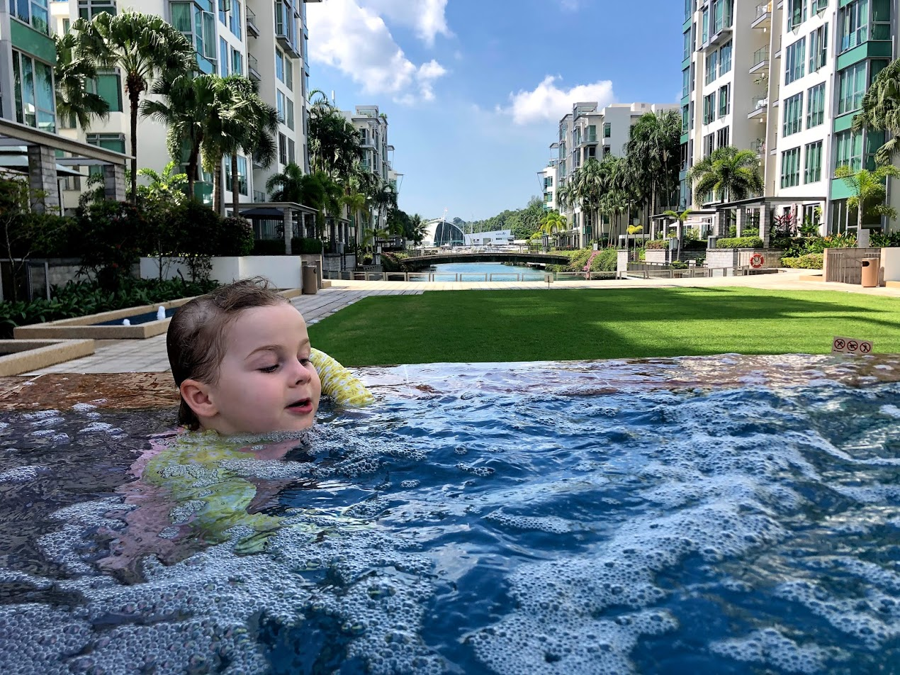 The floatie is so big that it can hardly fit it in the elevator. We store it on McC's bedroom balcony and need to drag it through the entire house to bring it with us. But it is super fun, if we have enough time for it to be worth dragging it in and out.