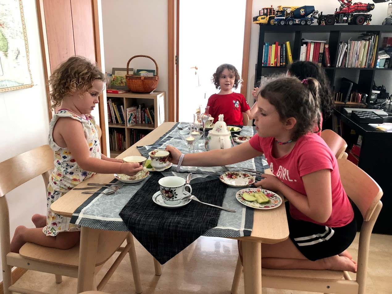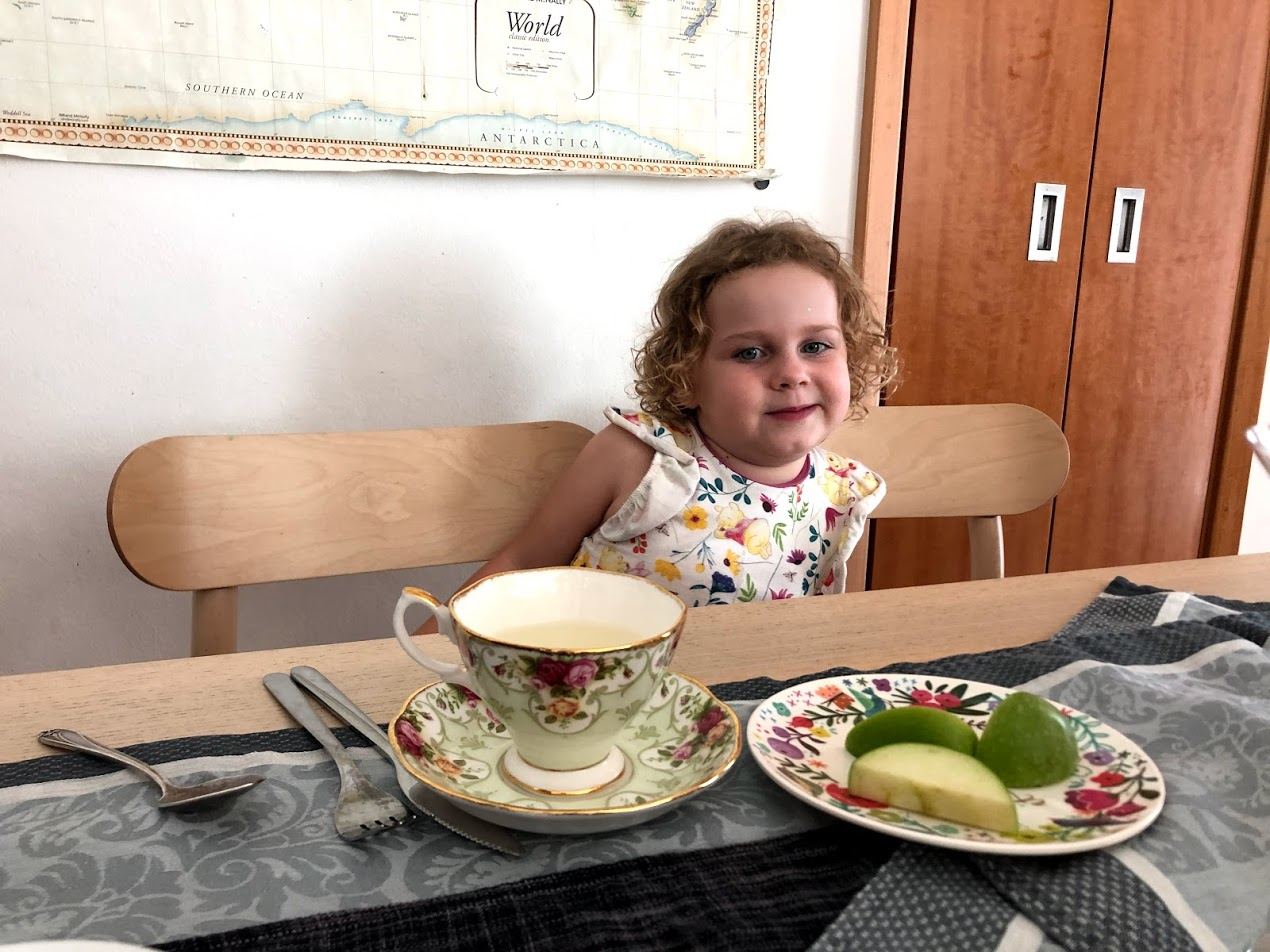 We always use tea cups with saucers, but I keep my most special ones hidden away in the cupboard above the fridge. I don't think I've used the good china in Singapore, so the girls just assumed it hadn't made the move.
